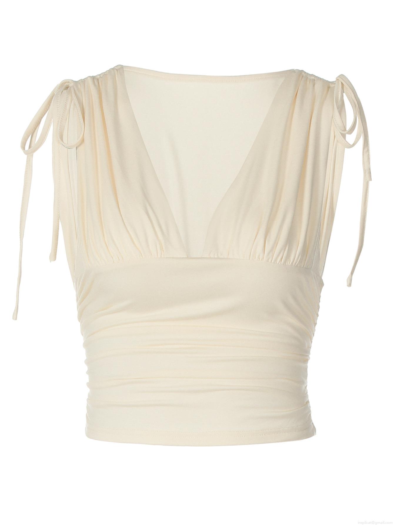 • Women Sexy Deep V-Neck Ruched Crop Top Rayon Spandex Lace-Up Shoulder Tie Camisole Slim Fit Summer Street Style Y2K Tank Top Vest