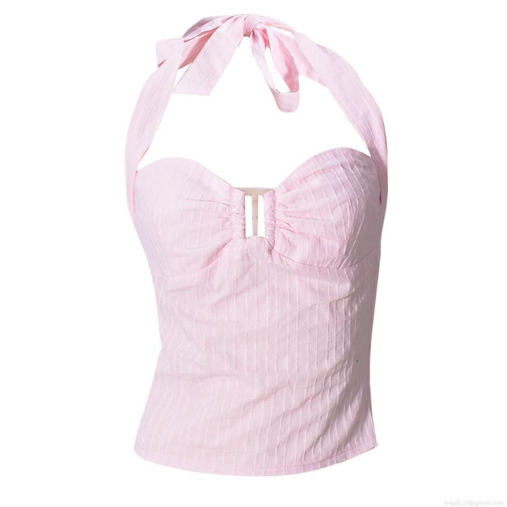 • Women Sexy Halter Backless Cropped Top Polyester Spandex Ribbed Knit Metal Ring Lace Up Summer Beach Vacation Tank Top