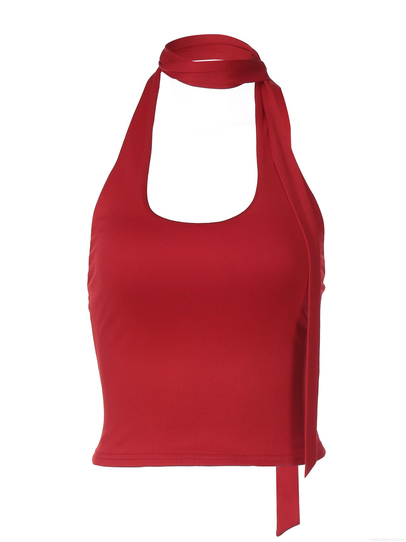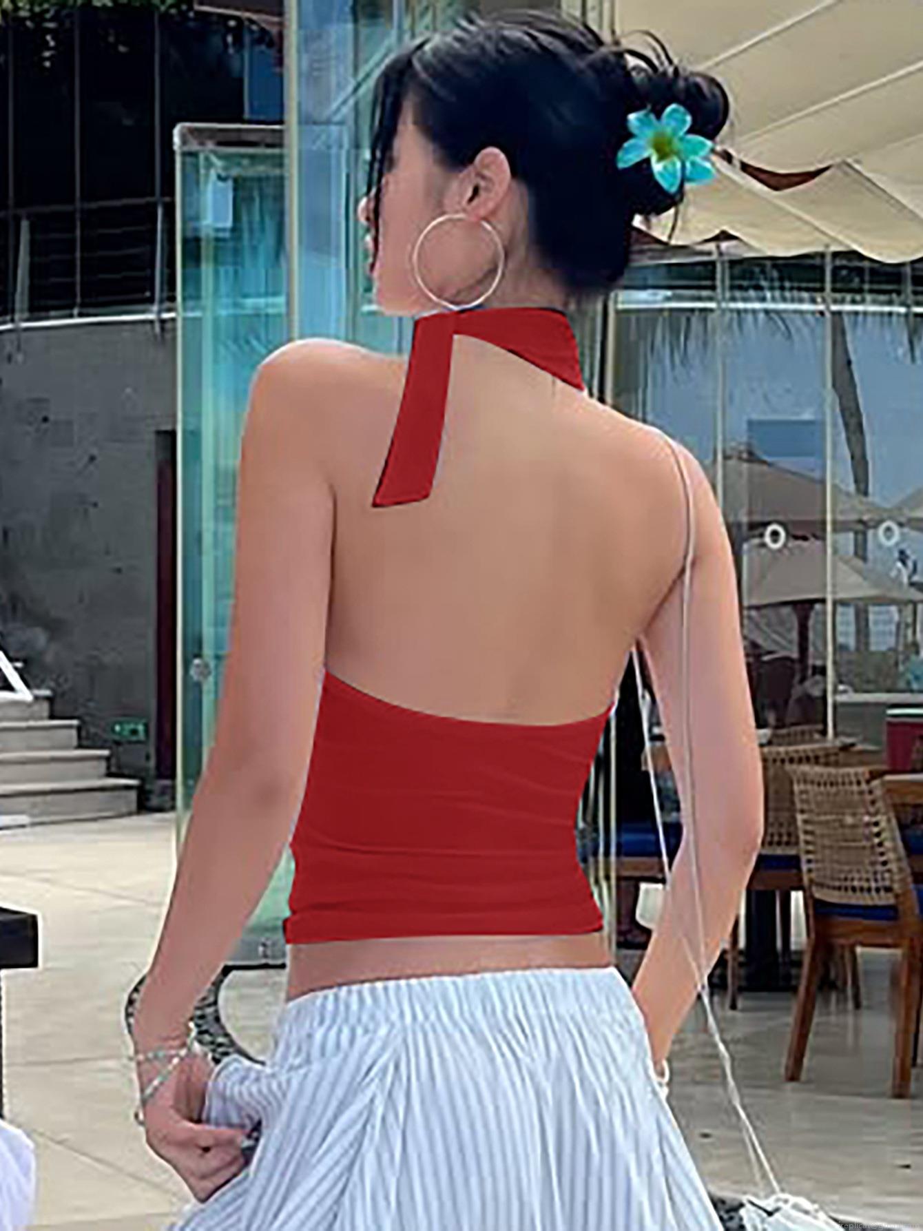 • Women Sexy Halter Neck Backless Camisole Solid Color Polyester Spandex Slim Fit Tank Top with Neck Tie Summer Vacation Streetwear Top