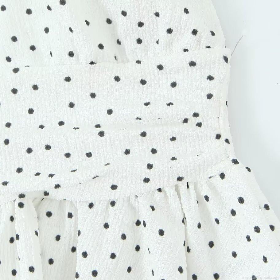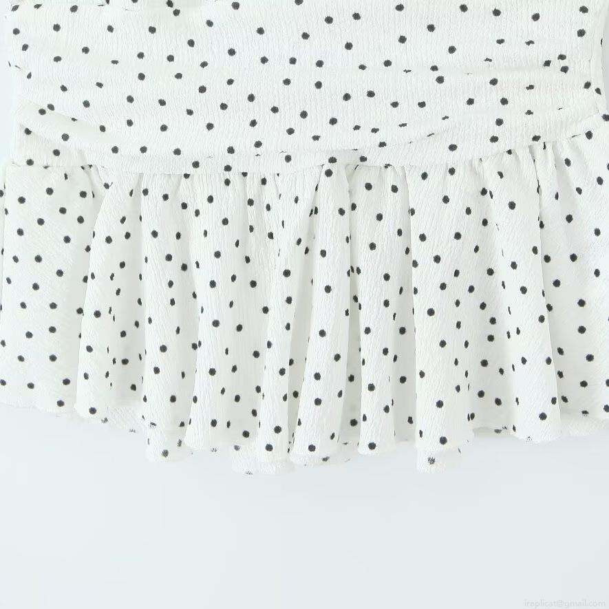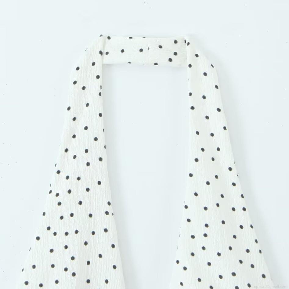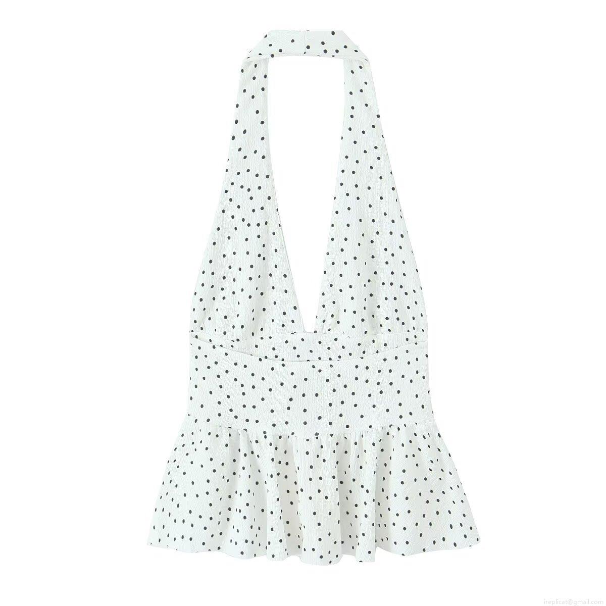 • Women Sexy Halter Neck Backless Crop Top Tiered Ruffle Hem Crepe Fabric Sleeveless Polka Dot Solid Color Top For Summer Party Clubwear