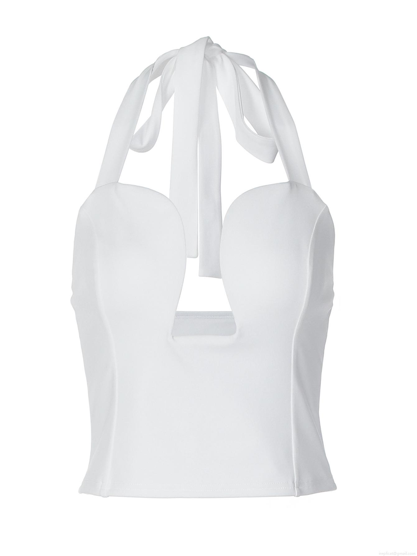 • Women Sexy Halter Neck Crop Top Polyester Spandex Hollow Out Underwire Tight Backless Bow Tie Vest Top For Summer Party Nightclub