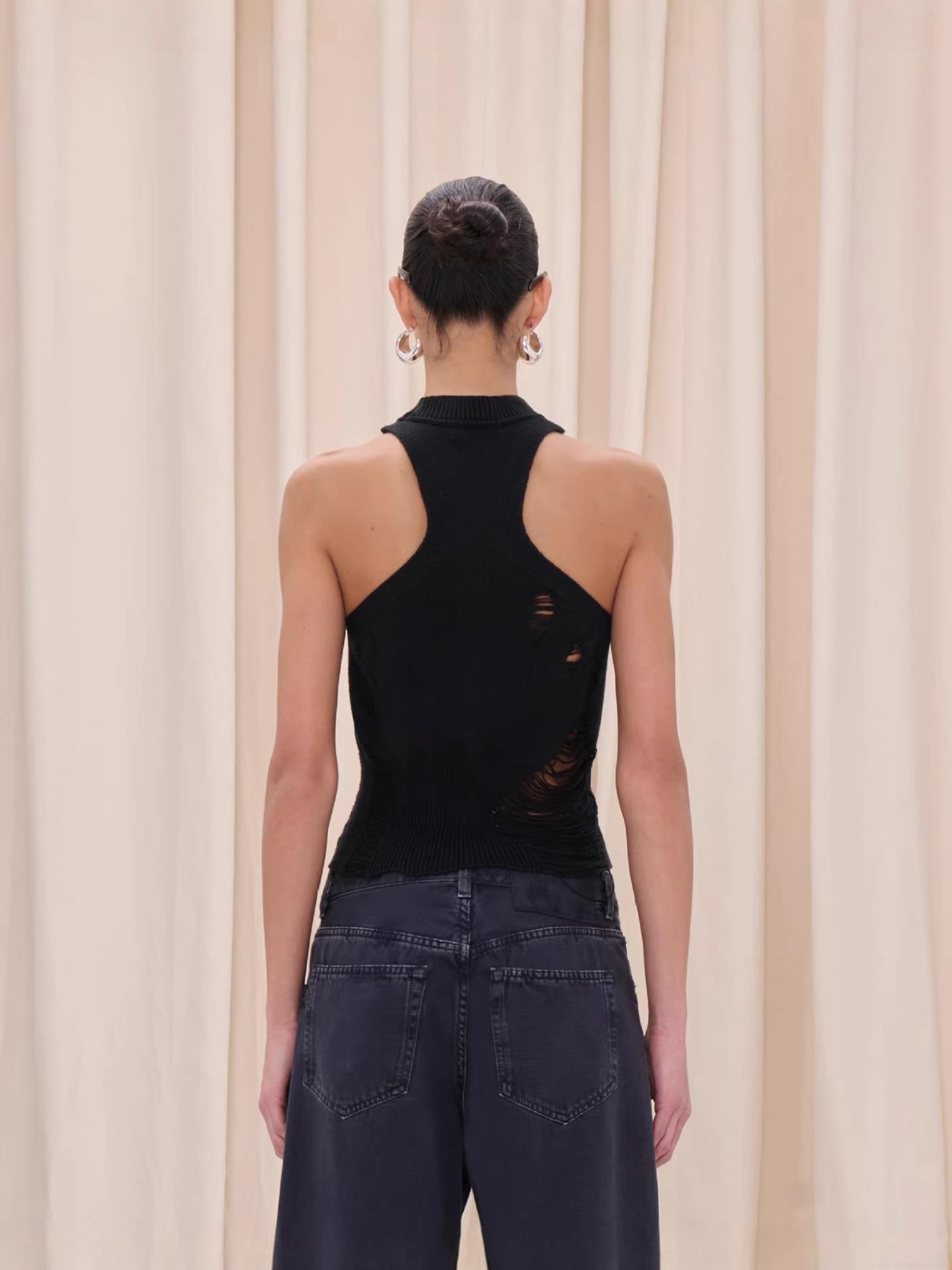 • Women Sexy Halter Neck Knit Tank Top Distressed Ripped Hollow Out Sleeveless Sweater Vest Wasteland Streetwear Slim Fit Bodycon Crop Top