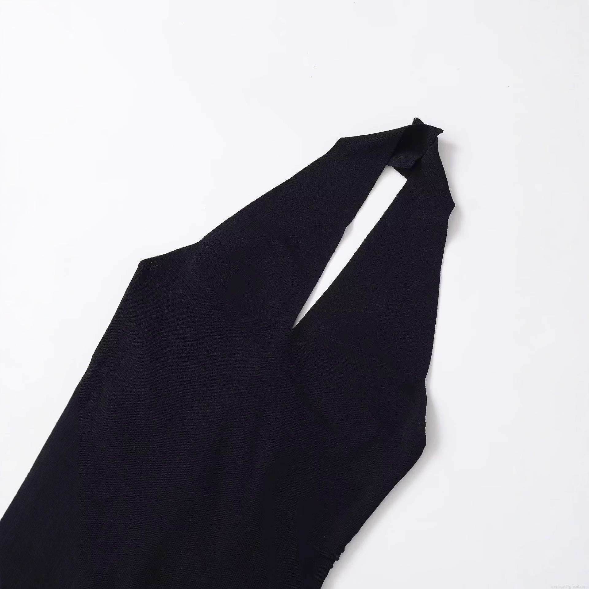 • Women Sexy Halter Neck Knit Top Slim Fit Ruched V-Neck Sleeveless Front Buttons Vest Elegant Party Club Summer Streetwear Casual Solid Black Tops