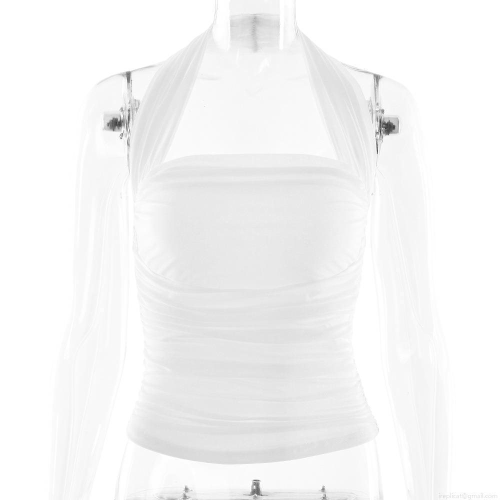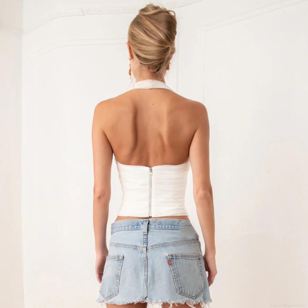 • Women Sexy Halter Neck Ruched Tank Top Backless Slim Fit Polyester Spandex Back Zipper Camisole Summer Party Clubwear Streetwear White