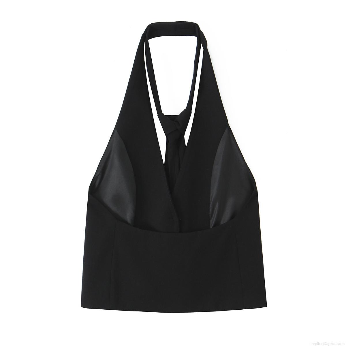 Solid Color, Backless, Neckband Design, Tie Decoration, Suit Fabric Texture