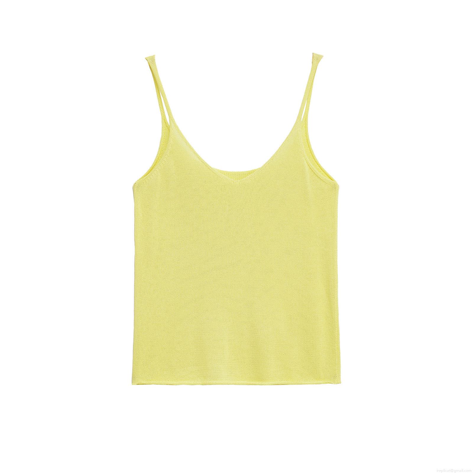• Women Sexy Hollow Out Knit Camisole Top Slim Fit Neon Yellow Backless Tank Top Summer Casual Streetwear Lightweight Sleeveless Vest