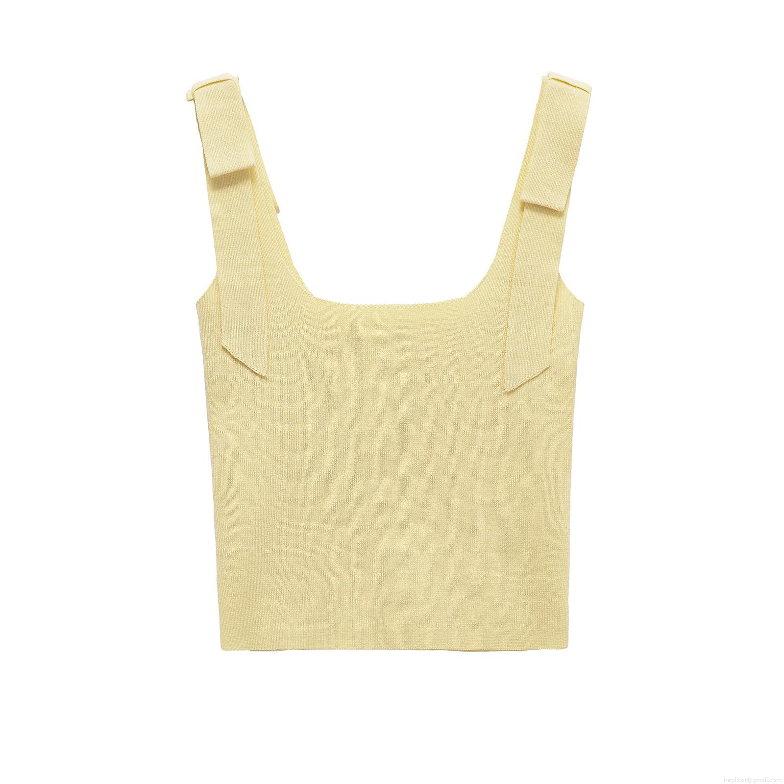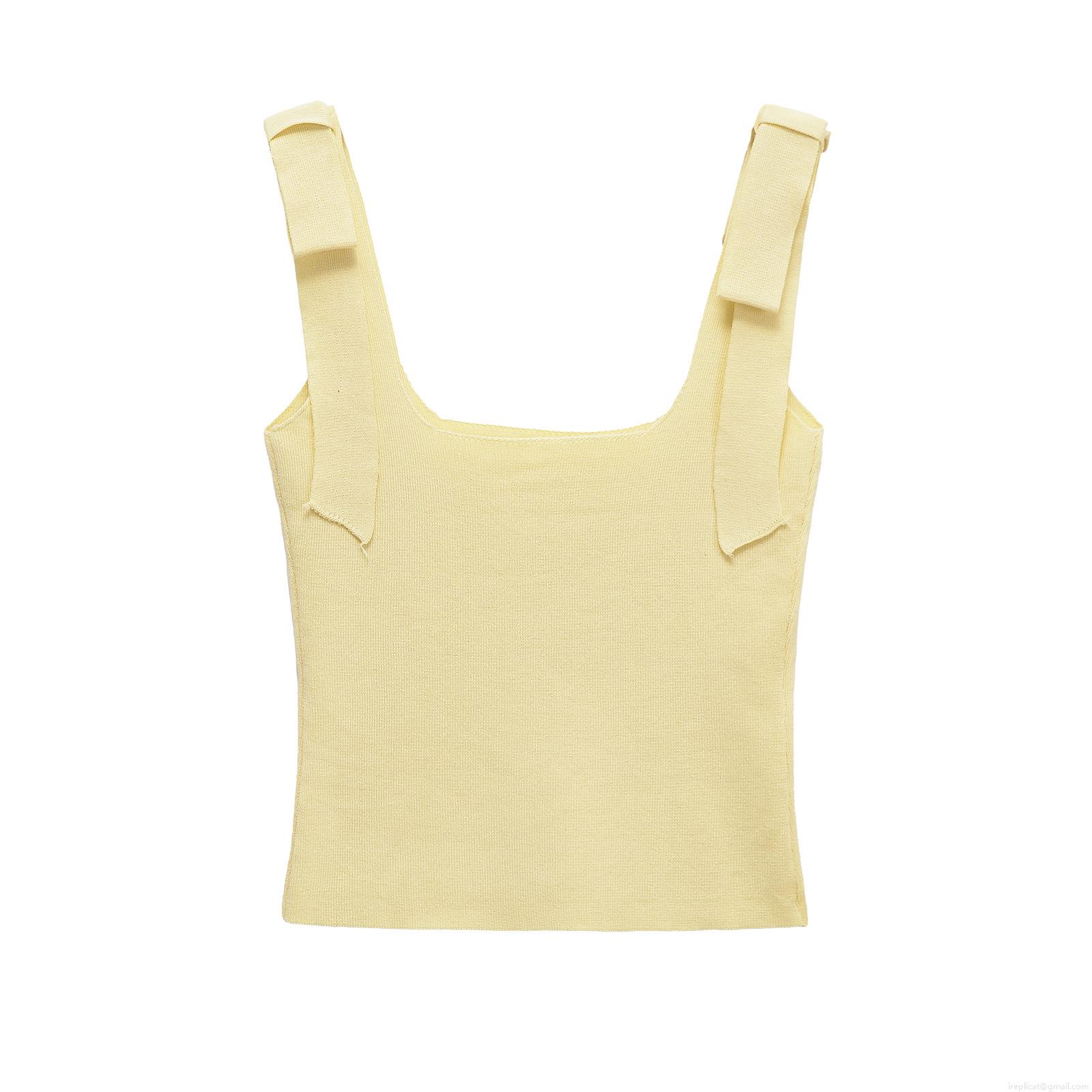 • Women Sexy Knit Camisole Top Bow Tie Shoulder Backless Square Neck Ribbed Tank Top Summer Beach Streetwear Western Style Solid Color Slim Sleeveless Vest
