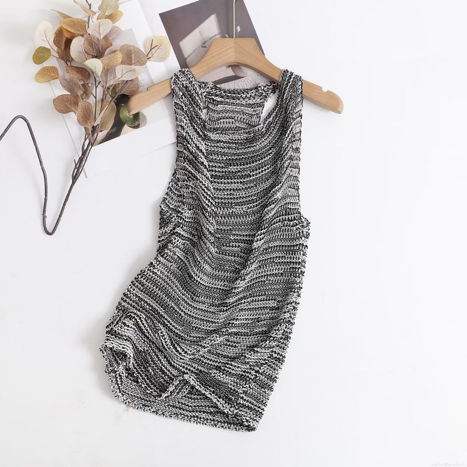Women Sexy Knit Tank Top 100% Cotton Sleeveless Wave Texture Camisole Casual Hollow Out Vest Summer Party Socialite Style Top