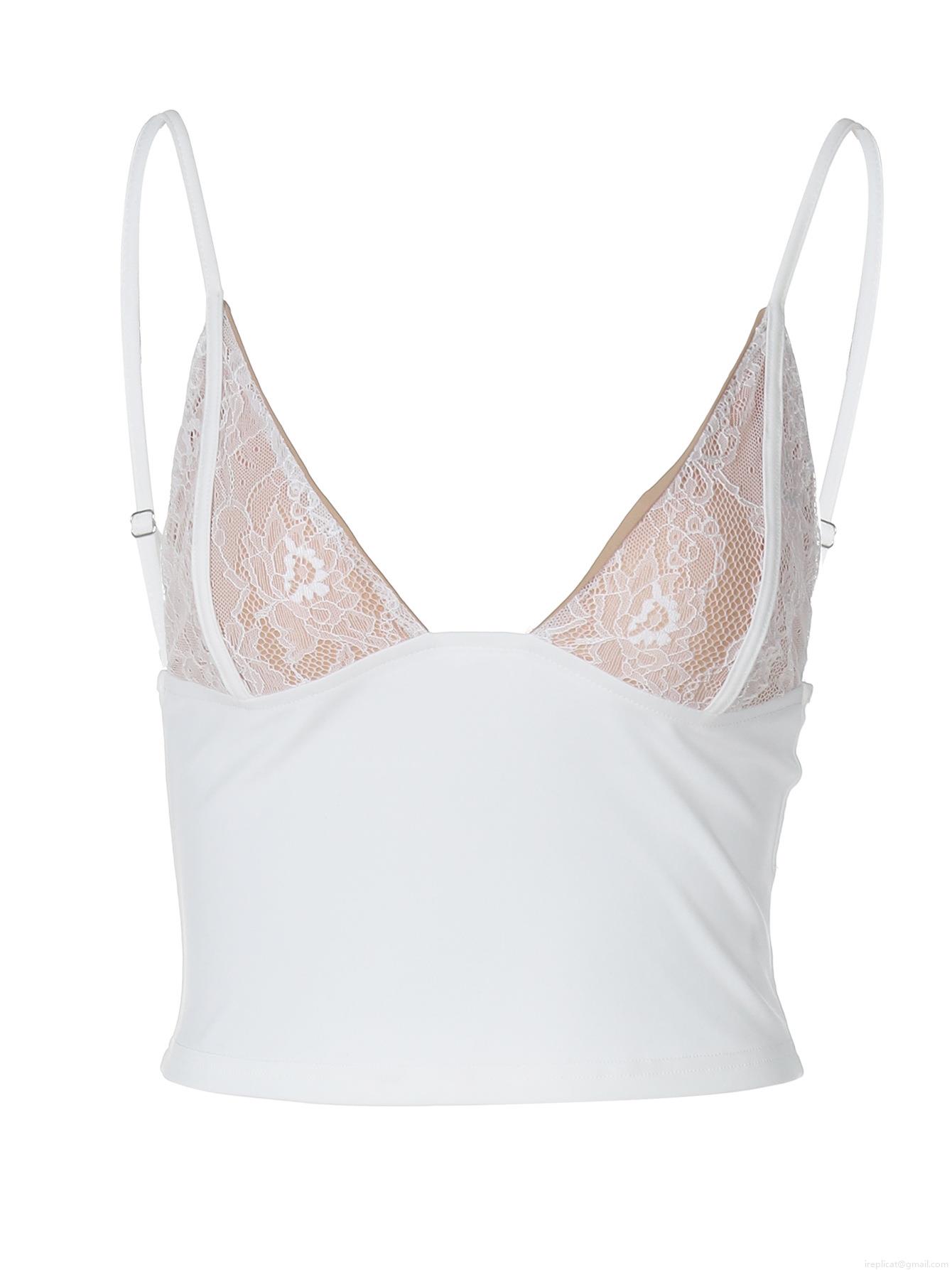 • Women Sexy Lace Mesh Deep V Neck Crop Top Camisole Polyester Spandex Slim Fit Sleeveless Solid Color Spicy Girl Clubwear Summer Inner Tank Top