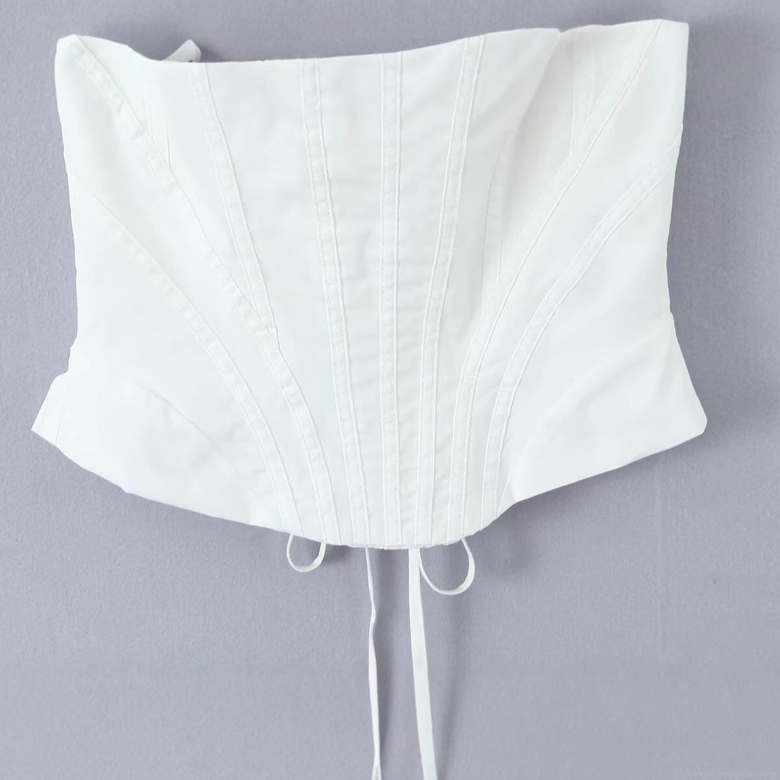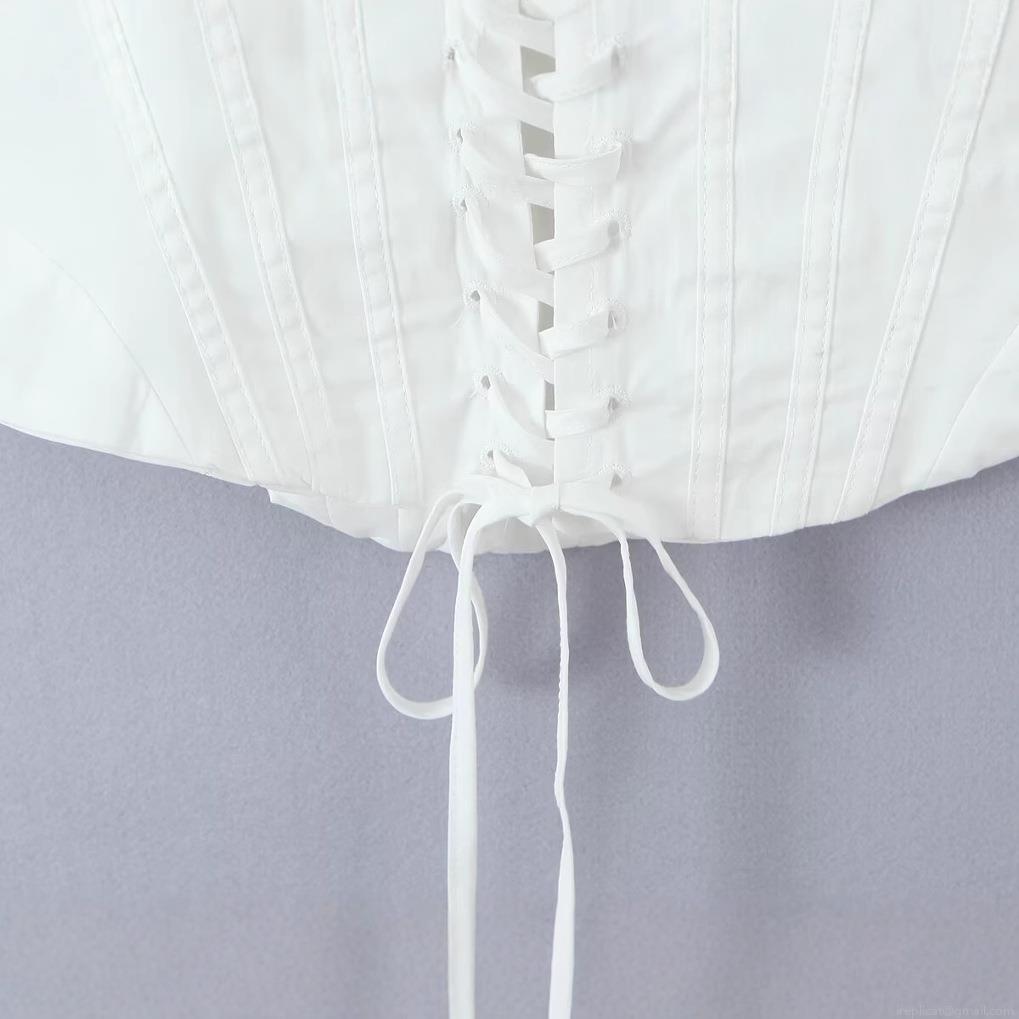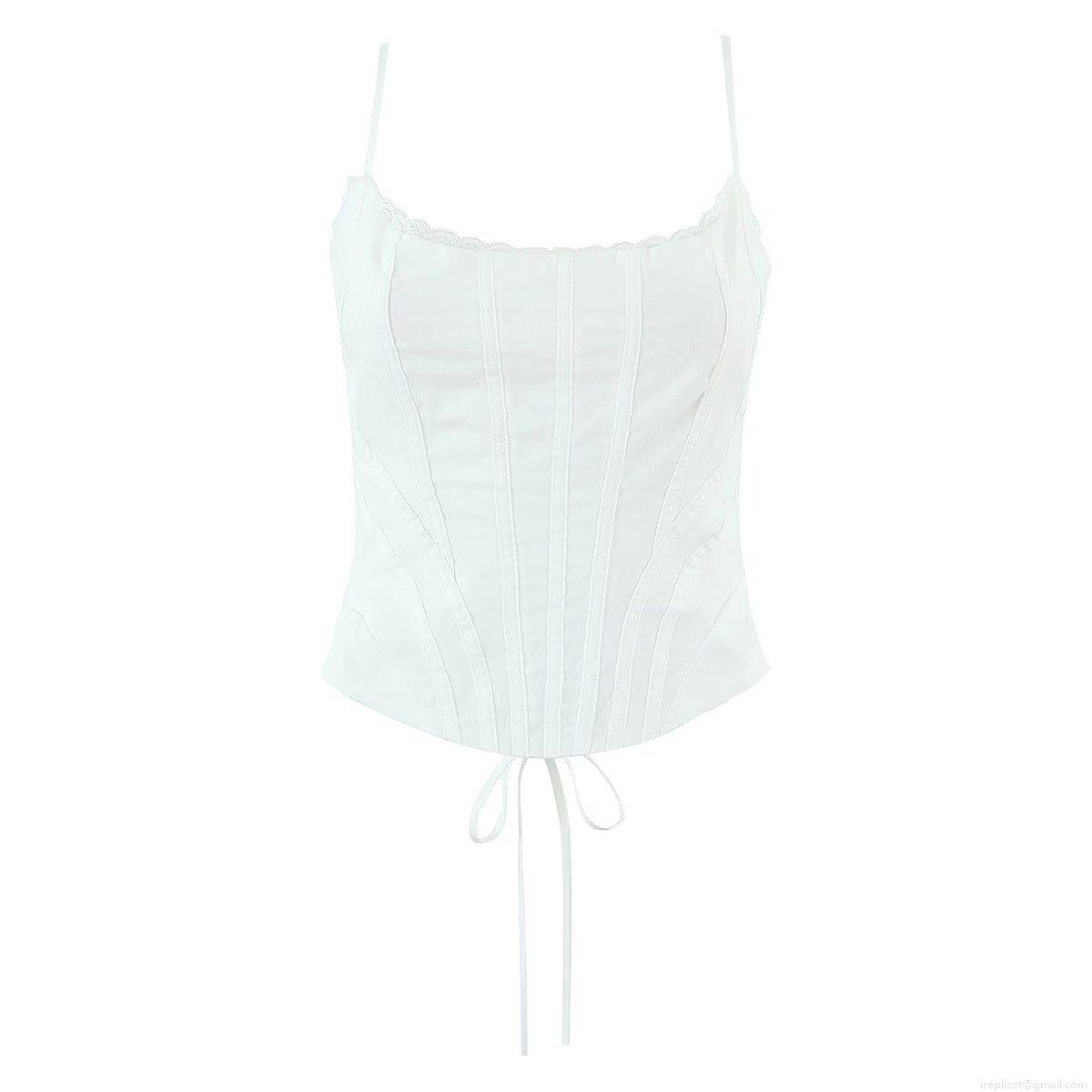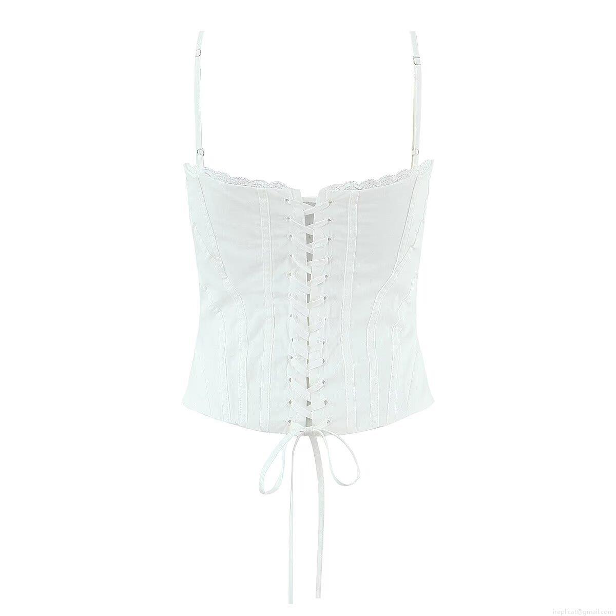 • Women Sexy Lace Patchwork Fishbone Corset Cami Top White Tie Up Back Bodycon Sleeveless Summer Streetwear Bustier Crop Top