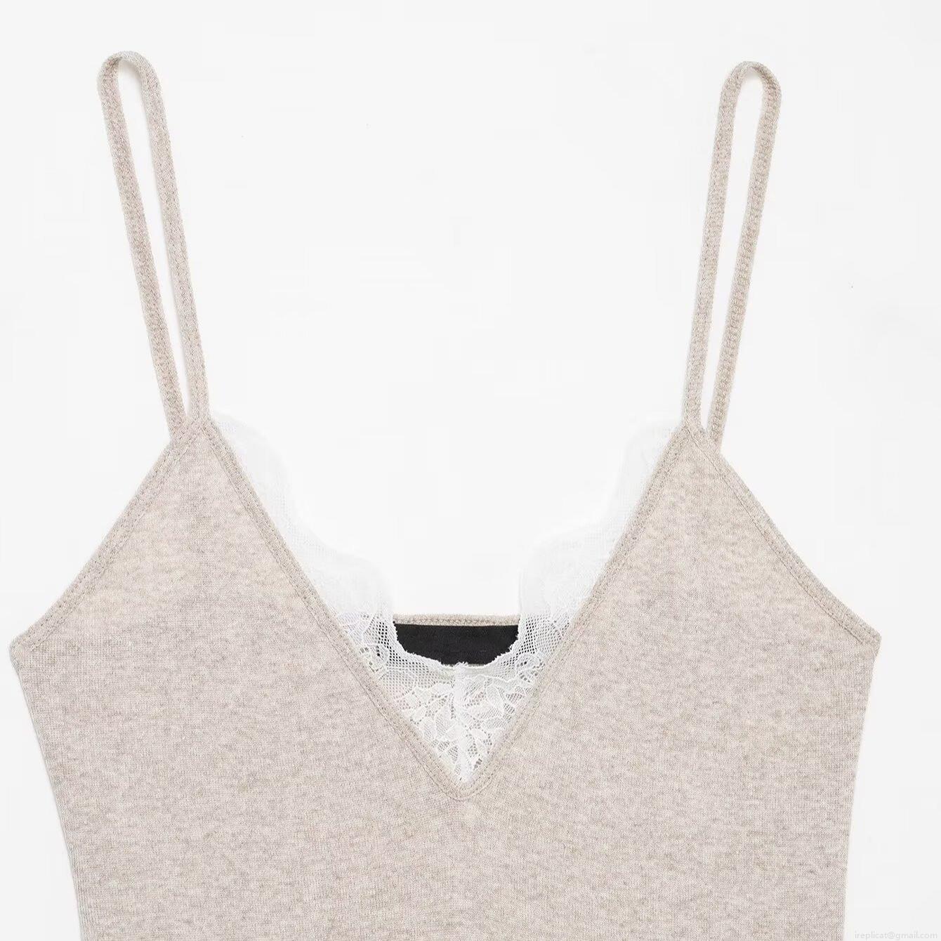• Women Sexy Lace Patchwork Knit Camisole Top V Neck Slim Fit Spaghetti Strap Tank Top For Daily Dating Women Sexy Summer Clothes
