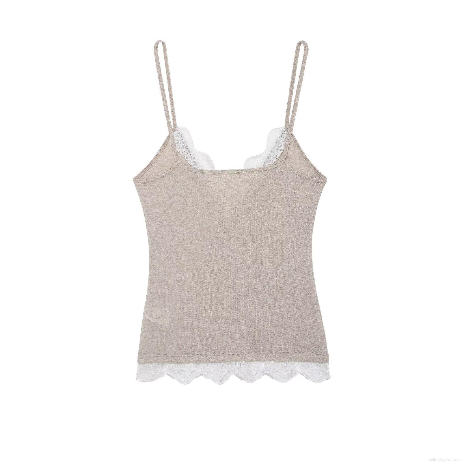 Women Sexy Lace Patchwork Knit Camisole Top V Neck Slim Fit Spaghetti Strap Tank Top For Daily Dating Women Sexy Summer Clothes