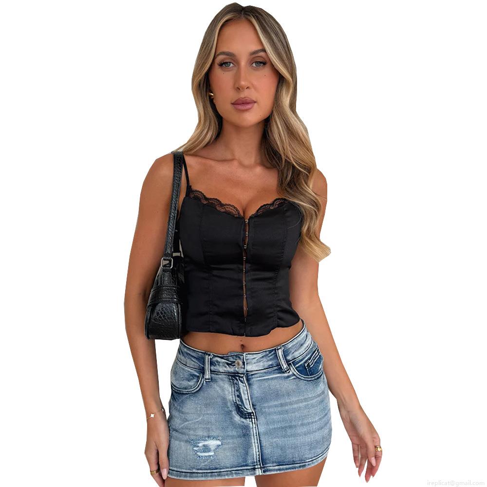 • Women Sexy Lace Patchwork Satin Corset Top Adjustable Strap Hook And Eye Cami Tank Top Street Style Sleeveless Summer Vest Lady Clubwear