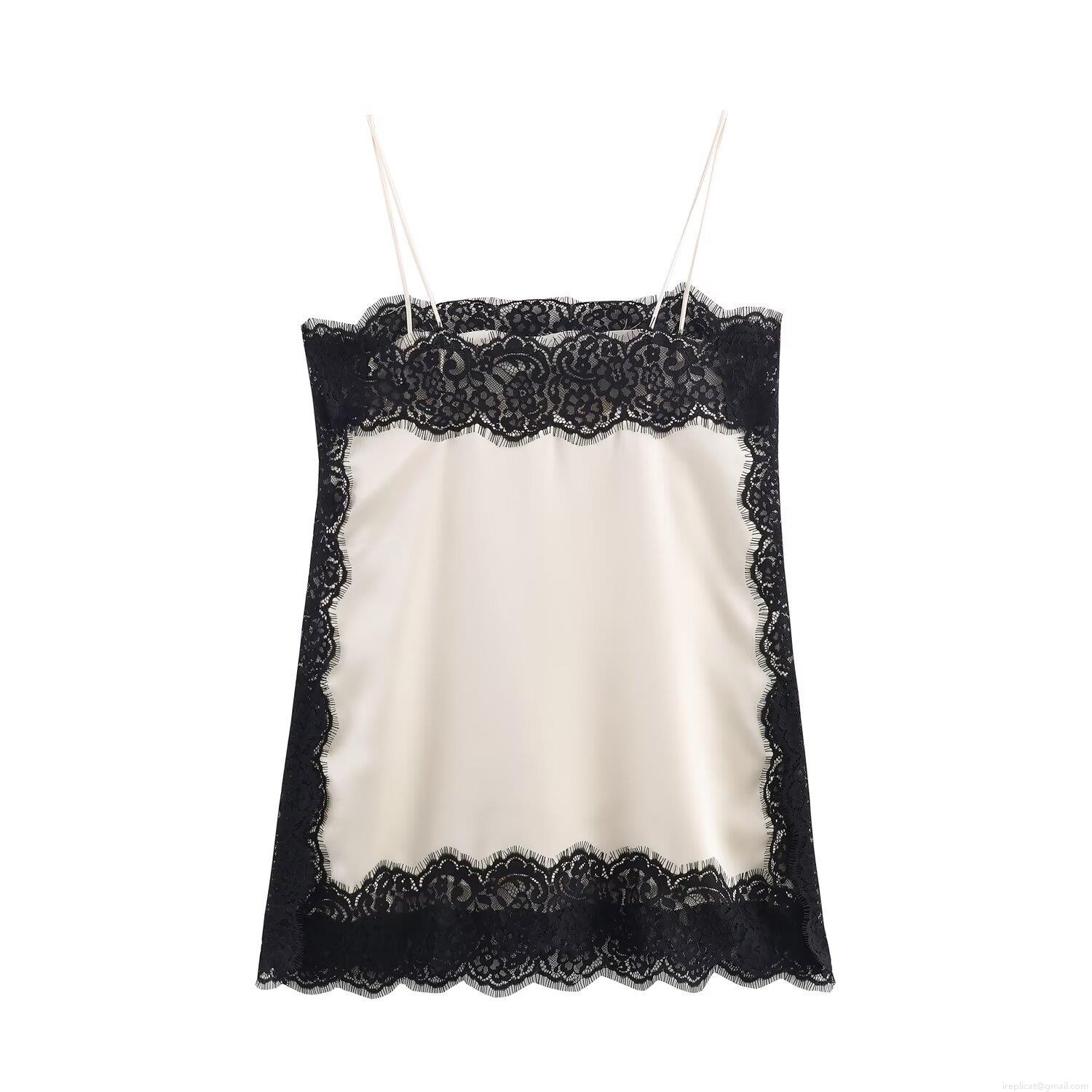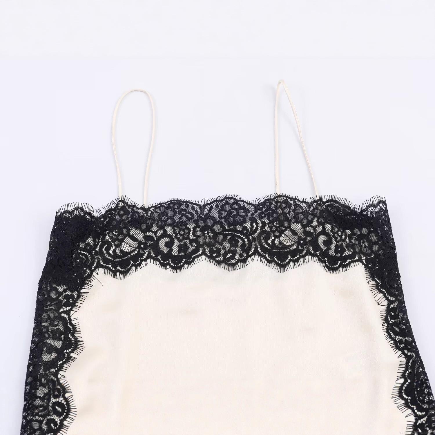 • Women Sexy Lace Stitching Satin Camisole V-Neck Spaghetti Strap Tank Top Contrast Color Sleeveless Shirt For Daily Streetwear Party