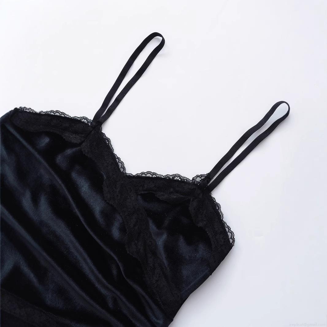 Solid Color, Splice, Lace, Pleats, Thin Shoulder Straps