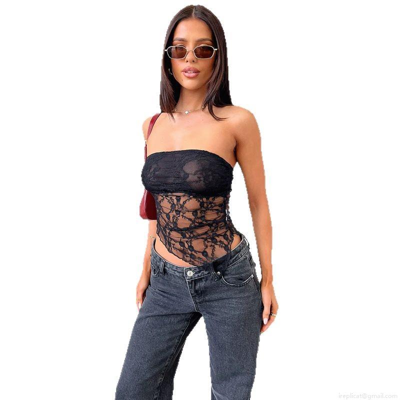 • Women Sexy Lace Tube Top Sleeveless Floral Sheer Mesh Cropped Tank Top Backless Asymmetric Hem Corset Top For Party Summer Clubwear Streetwear