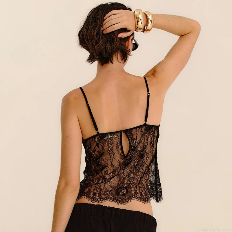 • Women Sexy Lace V-Neck Cami Top See-Through Floral Sleeveless Slim Fit Crop Top For Summer Party Clubwear Polyester Spandex