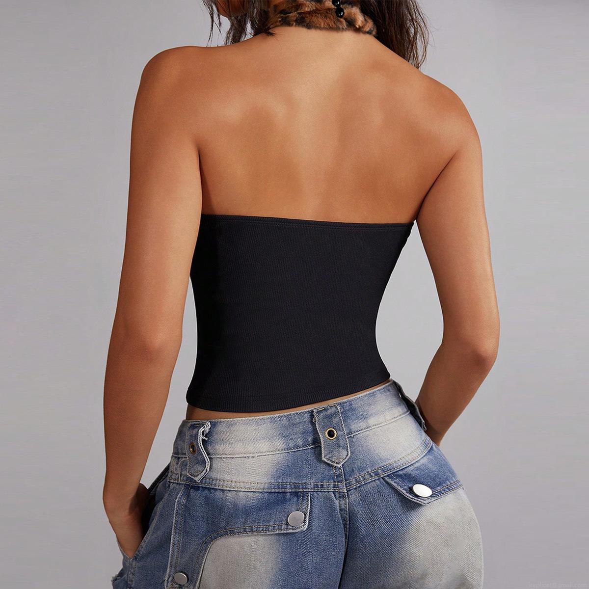 • Women Sexy Leopard Print Faux Fur Halter Top Sleeveless High Neck Ribbed Splicing Slim Fit Crop Top For Party Club Streetwear