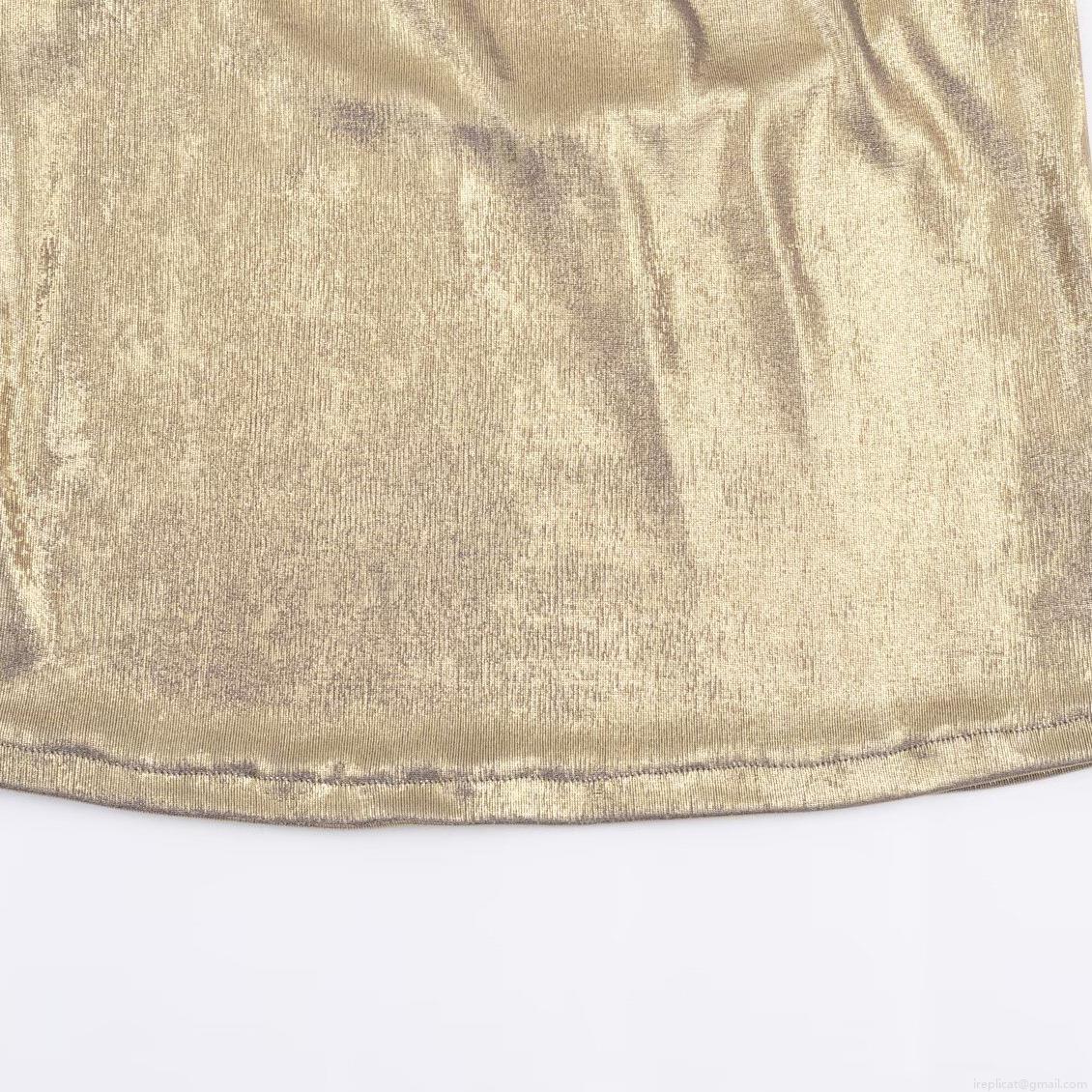 Women Sexy Metallic Halter Neck Backless Top Champagne Gold Draped Sleeveless Camisole For Party Club Night Out