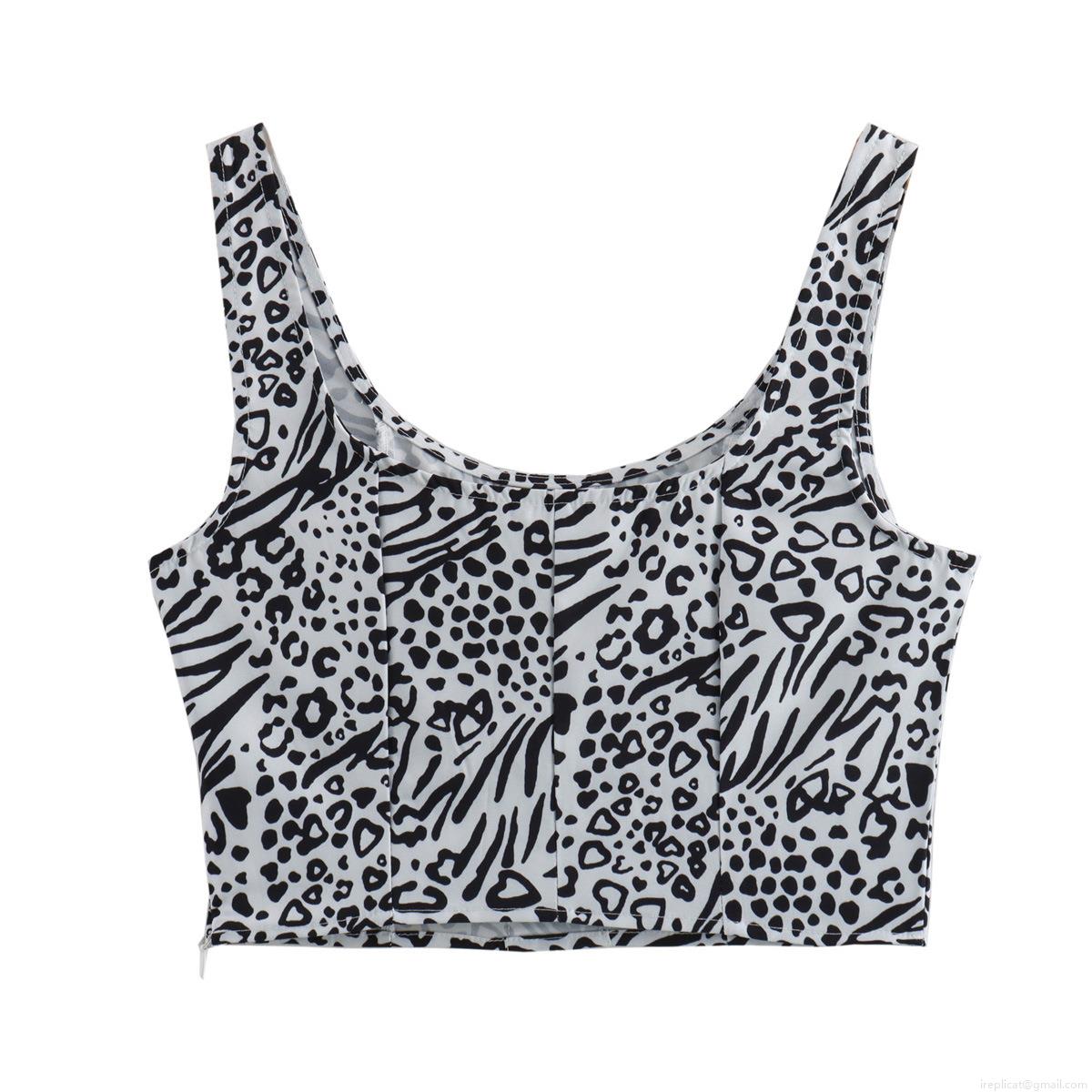 • Women Sexy Mixed Animal Print Crop Top Polyester Lace-Up Front Slim Fit Camisole Black And White Leopard Zebra Pattern Summer Streetwear Party Clubwear Top