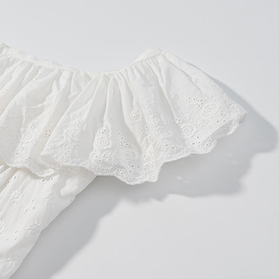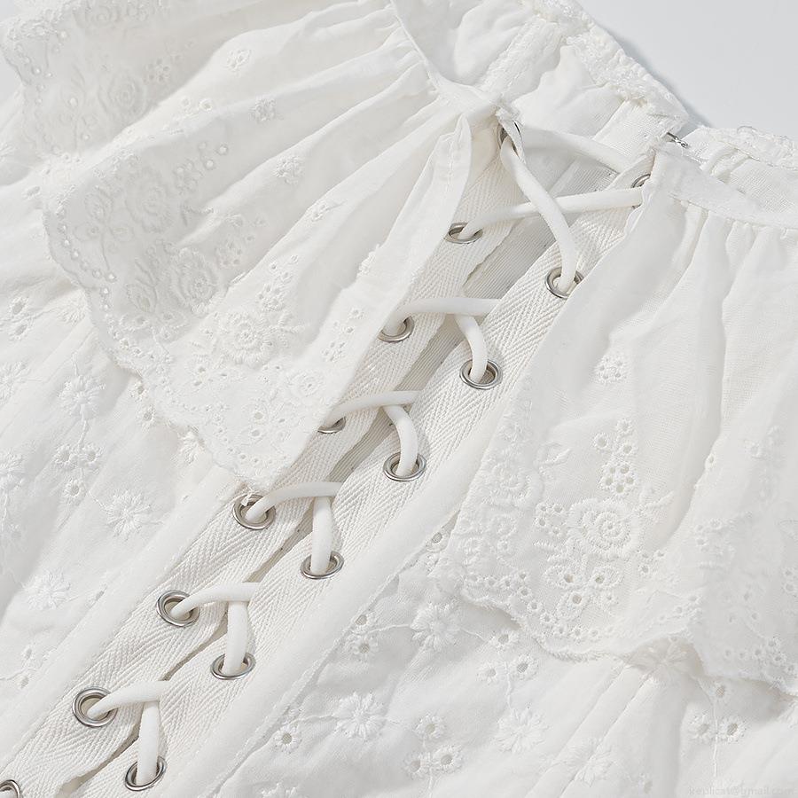 • Women Sexy Off Shoulder Camisole Tank Top White Embroidery Eyelet Ruffle Lace-up Slim Fit Short Vest For Summer Vacation Street Style
