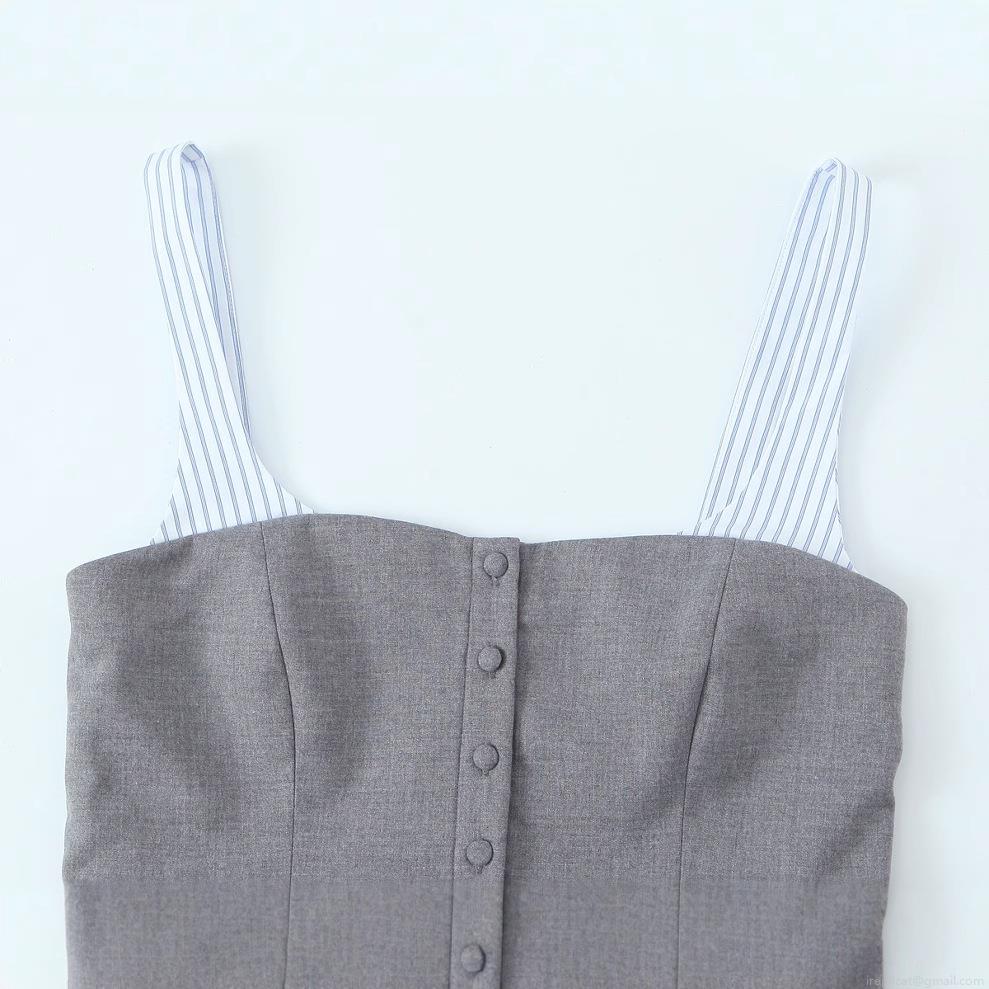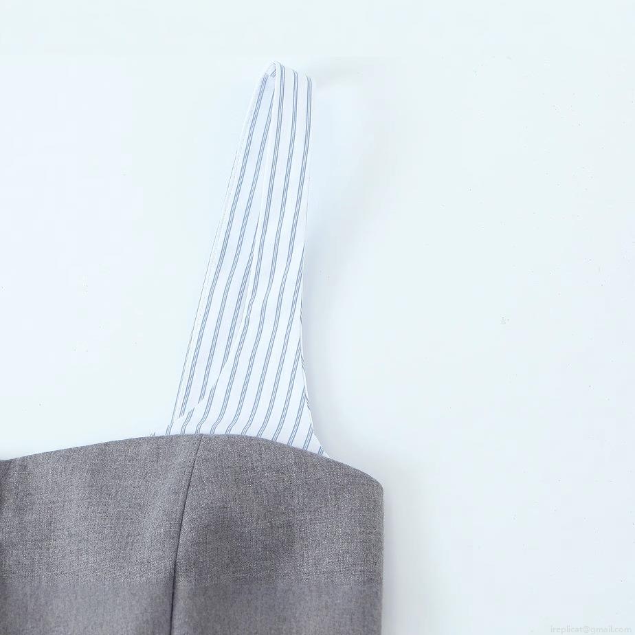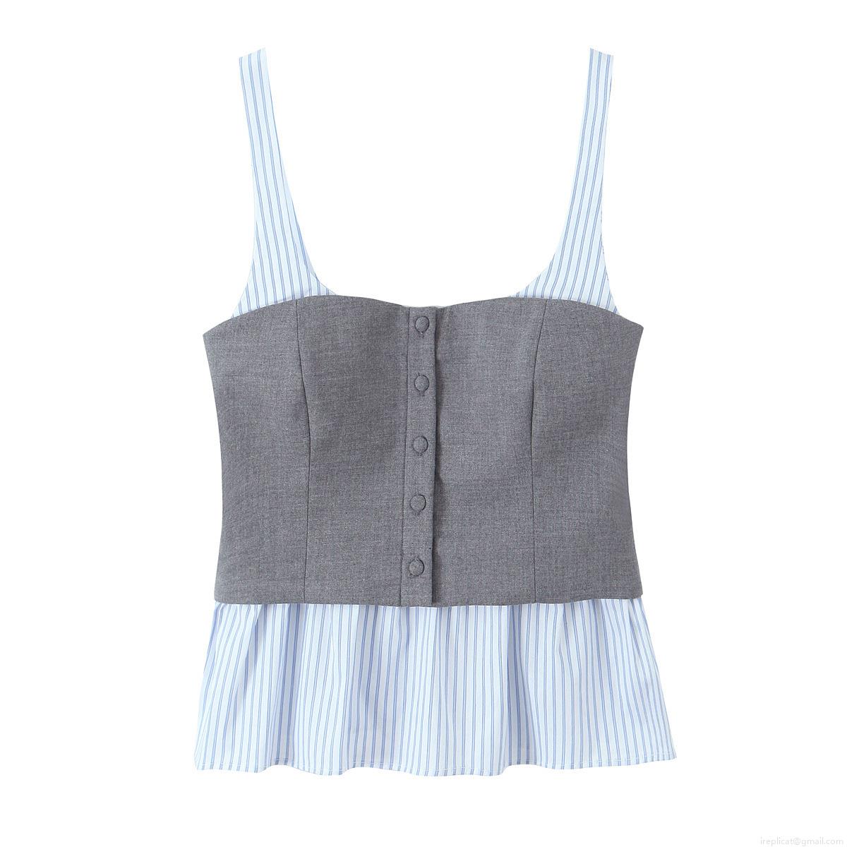 • Women Sexy Patchwork Striped Camisole Top Spaghetti Straps Button Up Peplum Hem Poplin Tank Top Summer Streetwear Slim Fit Blouse