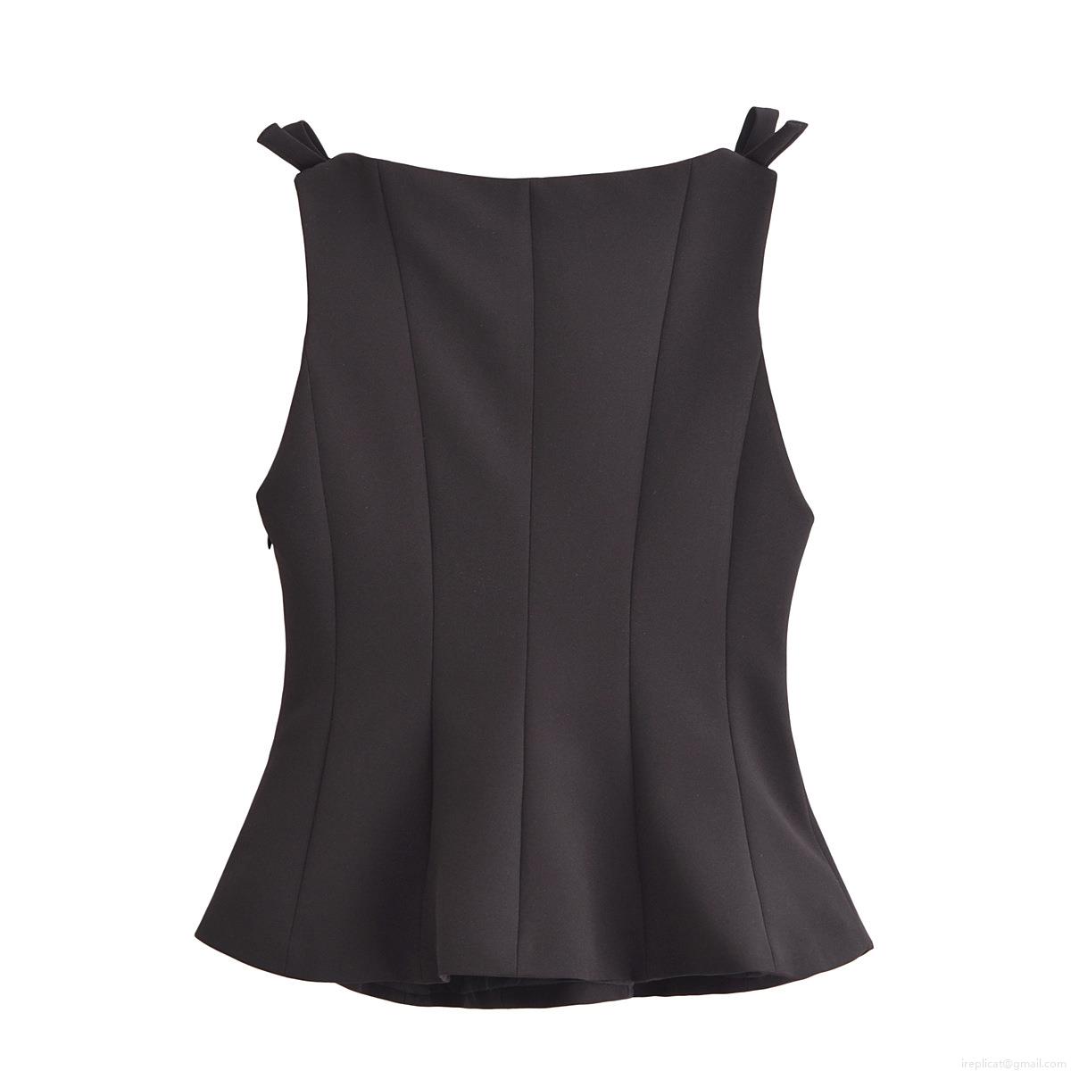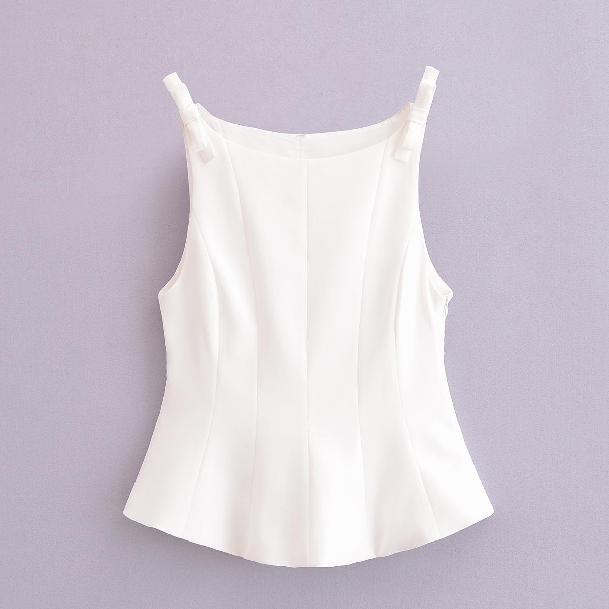 • Women Sexy Peplum Camisole Top Elegant Bow Shoulder Strap Woven Polyester Tank Top For Party Clubwear Solid Color Slim Fit Sleeveless Blouse