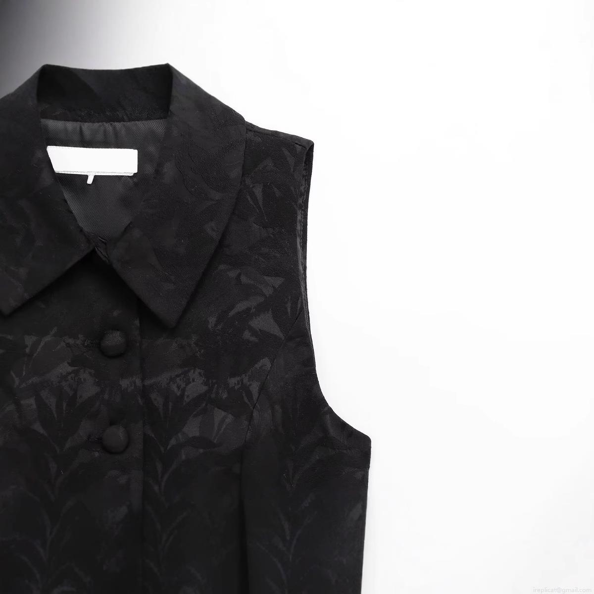 • Women Sexy Peplum Jacquard Vest Top Sleeveless Lapel Collar Single Breasted Floral Leaf Pattern INS Style Socialite Summer Tank Top