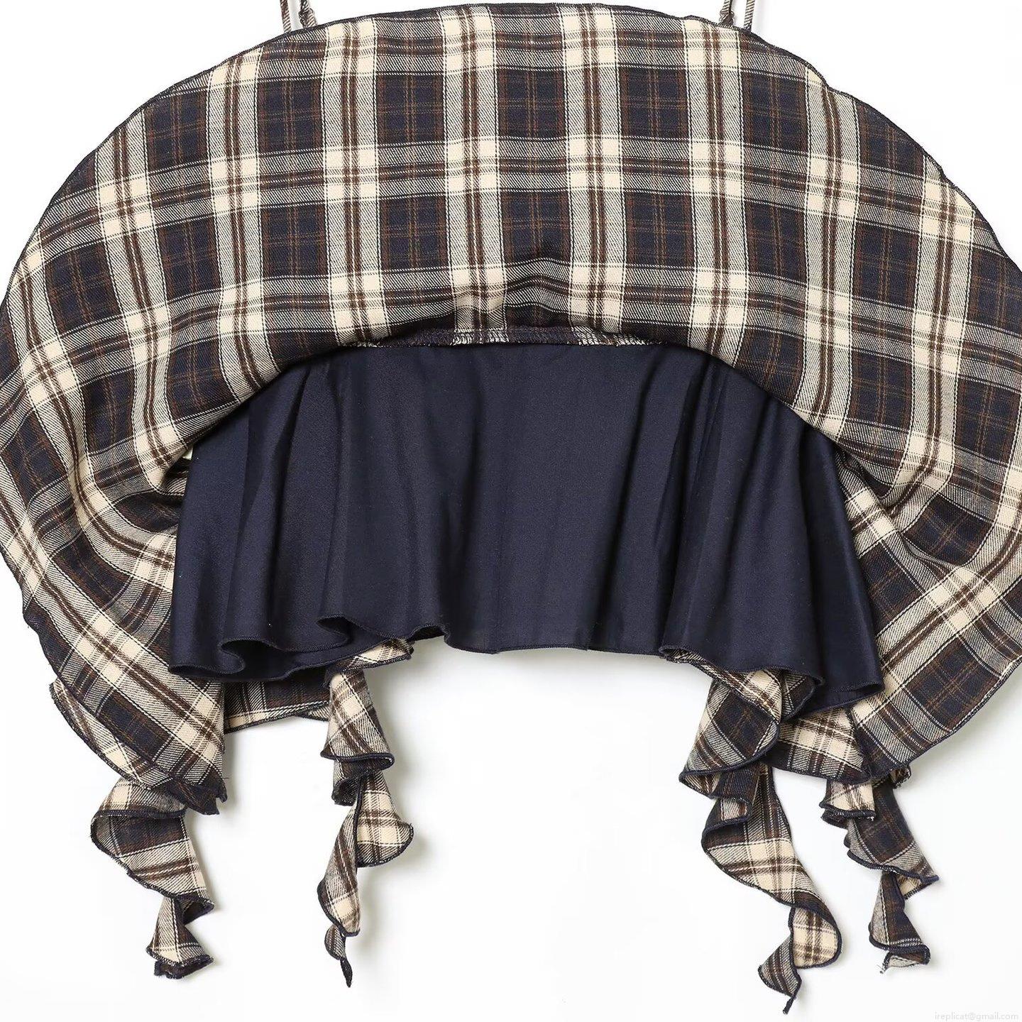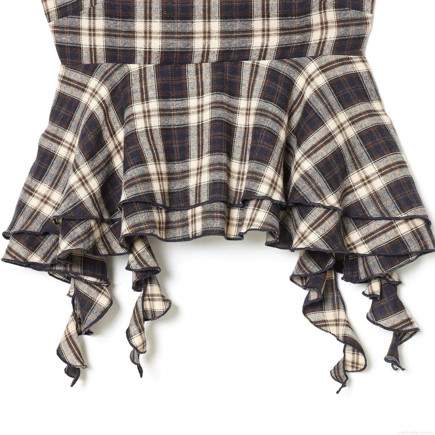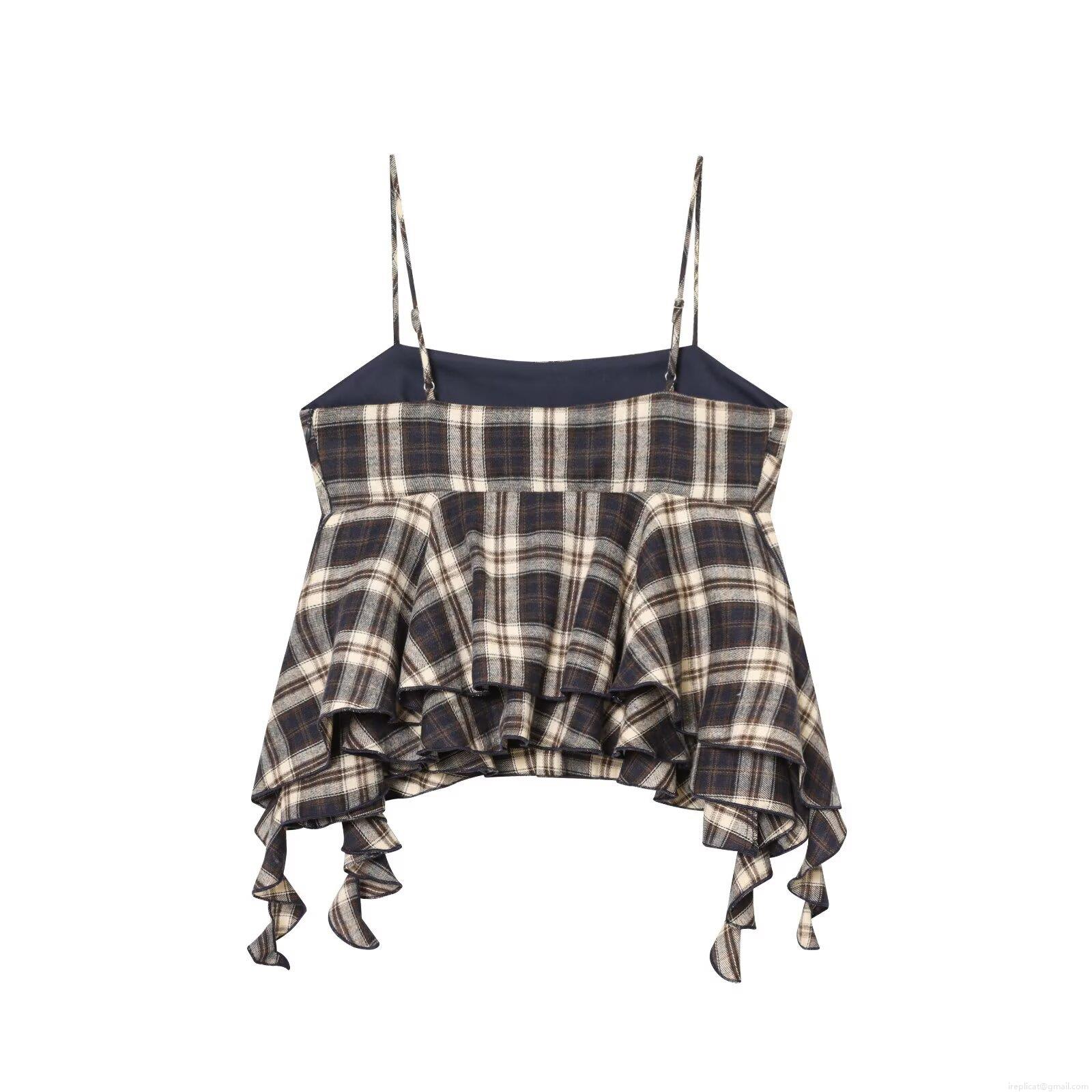 • Women Sexy Plaid Camisole Layered Ruffle Peplum Top Adjustable Spaghetti Straps Backless Checkered Tank Top French Pastoral Style Summer Blouse