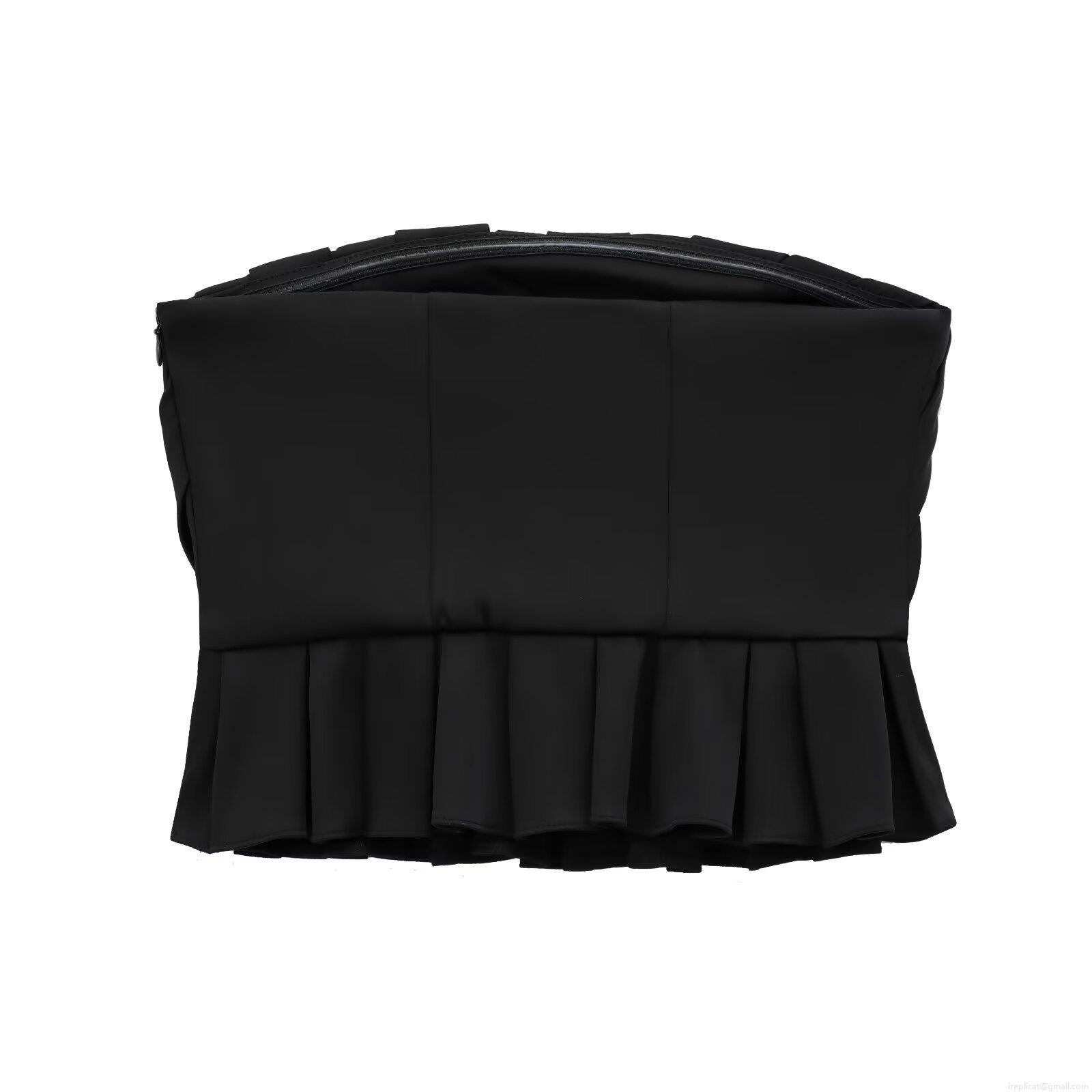 Women Sexy Pleated Satin Tube Top Strapless Ruffled Crop Top Party Wedding Evening Wear Elegant Slim Fit Backless Bustier Solid Black Summer Fashion