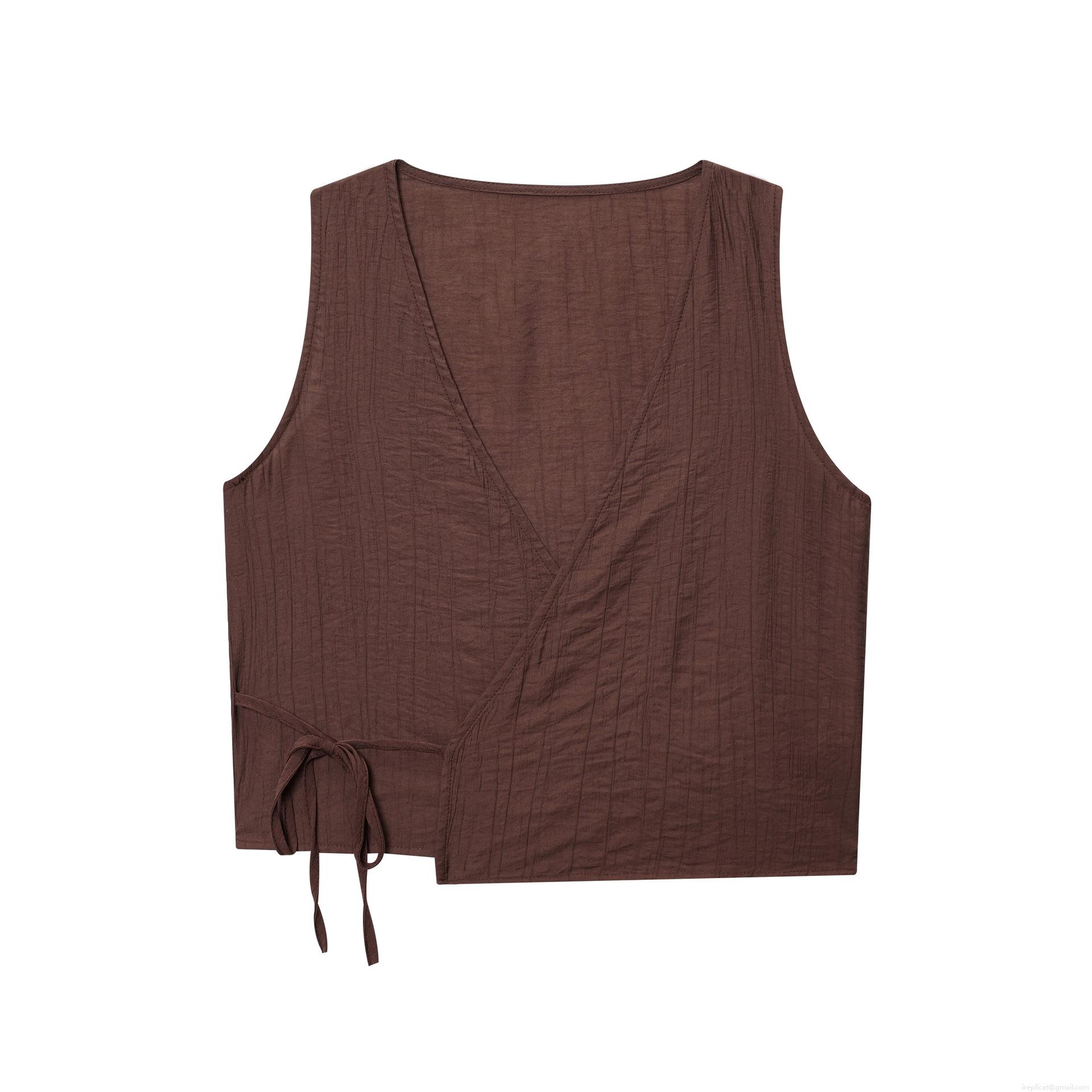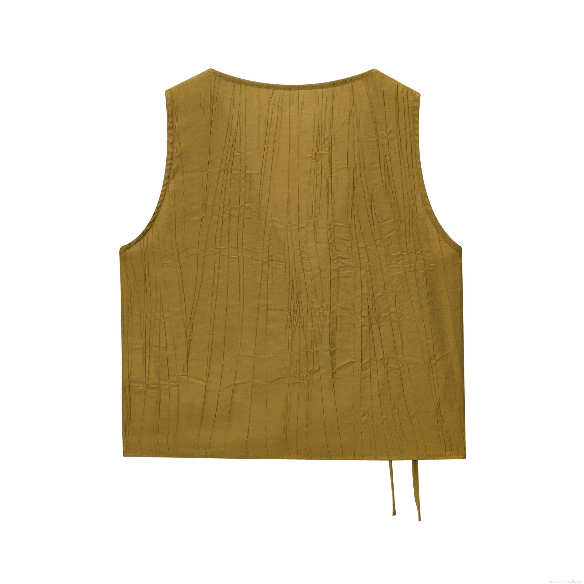 • Women Sexy Pleated Sleeveless Tank Top Crossover V-Neck Side Tie Vest Irregular Hem Crinkle Texture Slim Fit Summer Party Clubwear Streetwear