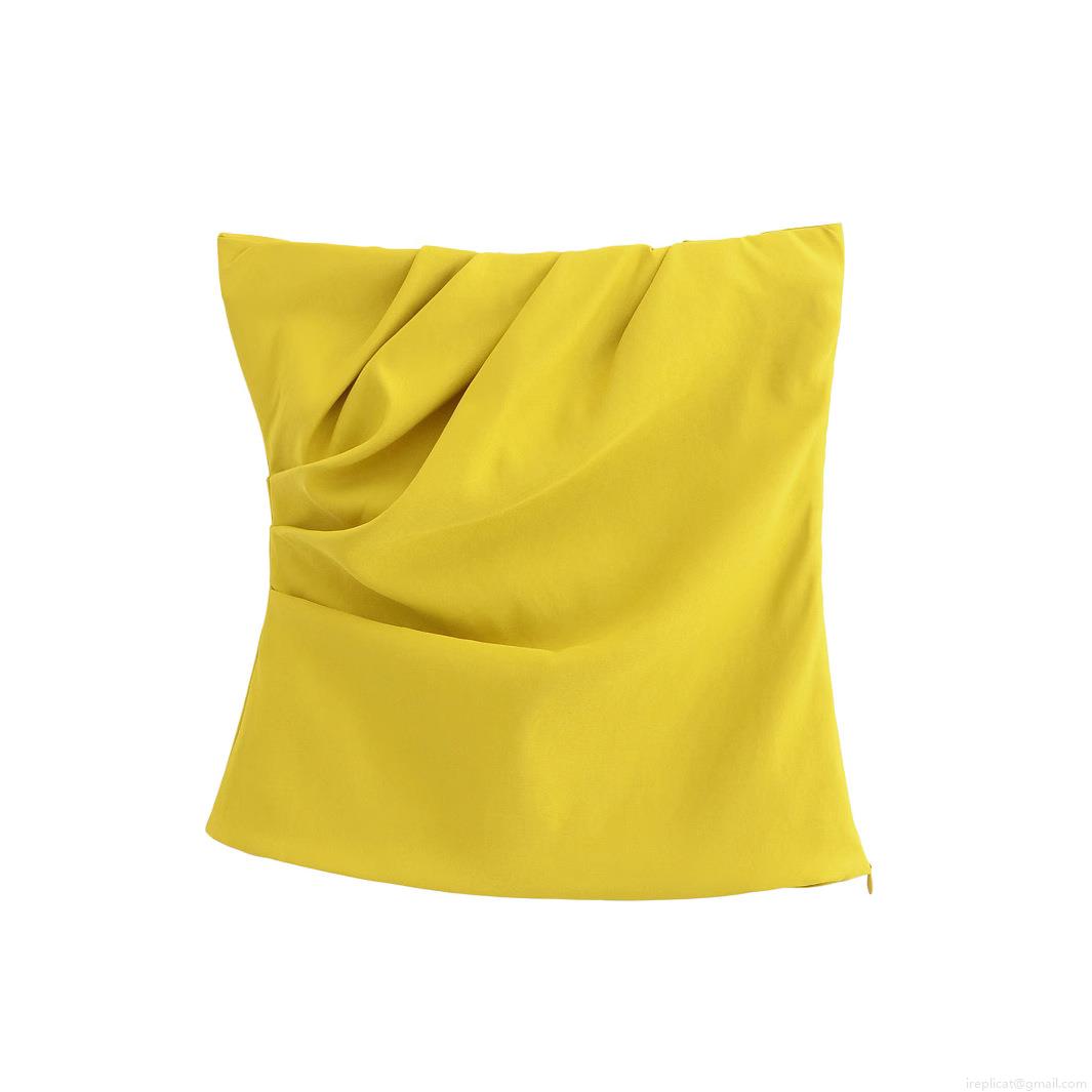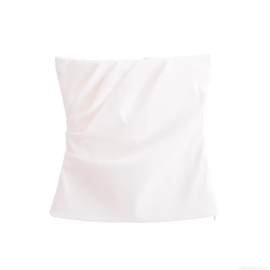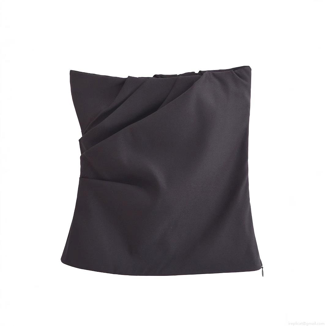 • Women Sexy Pleated Tube Top Solid Color Polyester Slim Fit Bandeau With Side Invisible Zipper Summer Street Style Sleeveless Crop Top For Party Daily Wear