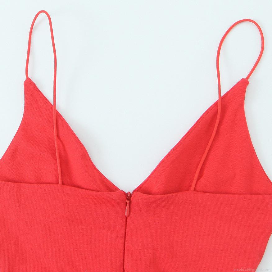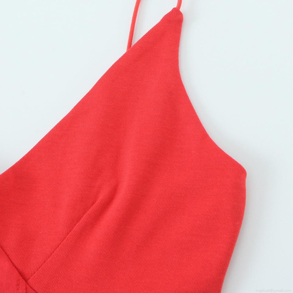Solid Color, Ruffles, Backless, Deep V-neck, Thin Straps, Spliced ​​hem