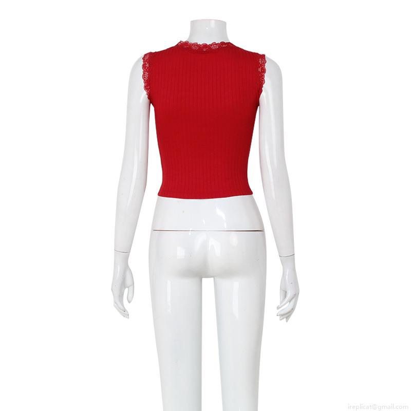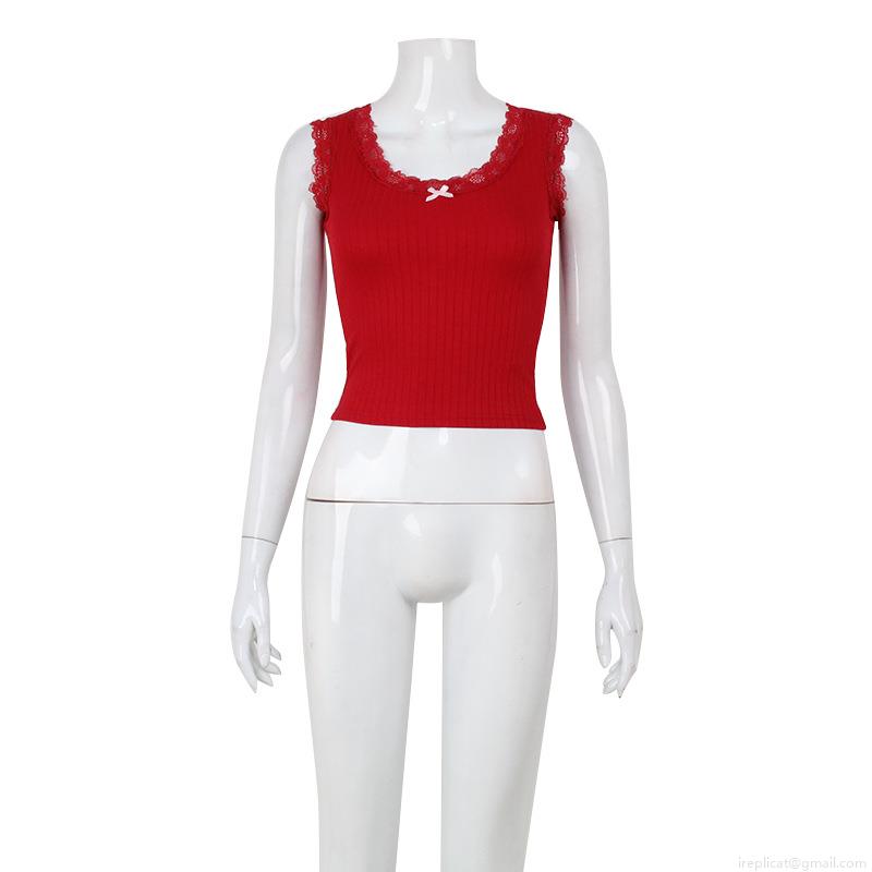 • Women Sexy Red Lace Trim Ribbed Knit Camisole Top Square Neck Sleeveless Patchwork Crop Tank Top For Y2K Fashion Summer Party Clubwear Cami