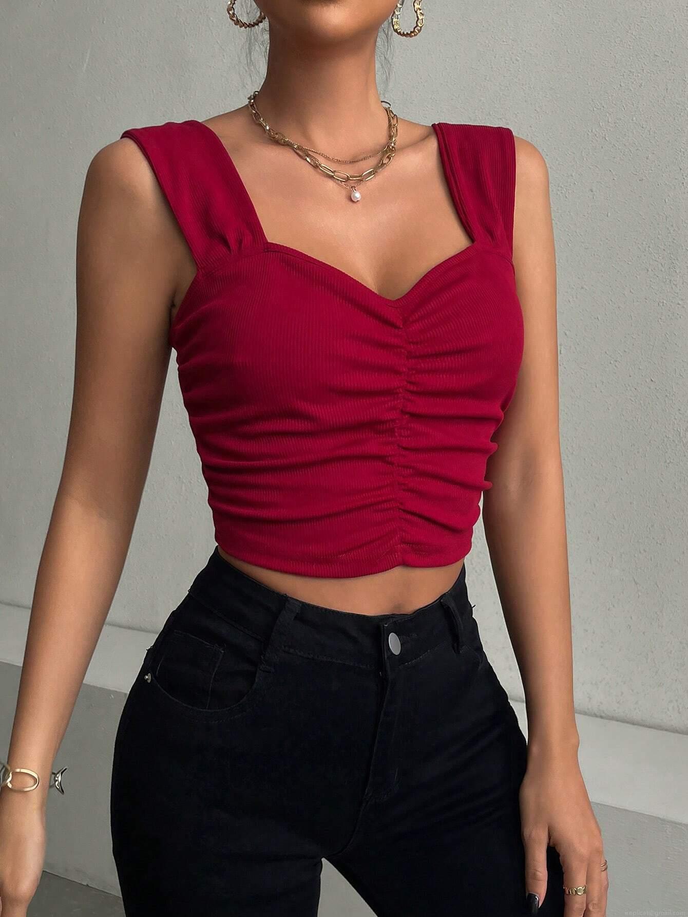 • Women Sexy Ruched Ribbed Knit Tank Top Solid Color Slim Fit V-Neck Cami Crop Top Summer Sleeveless Viscose Blend Casual Clubwear Streetwear Top