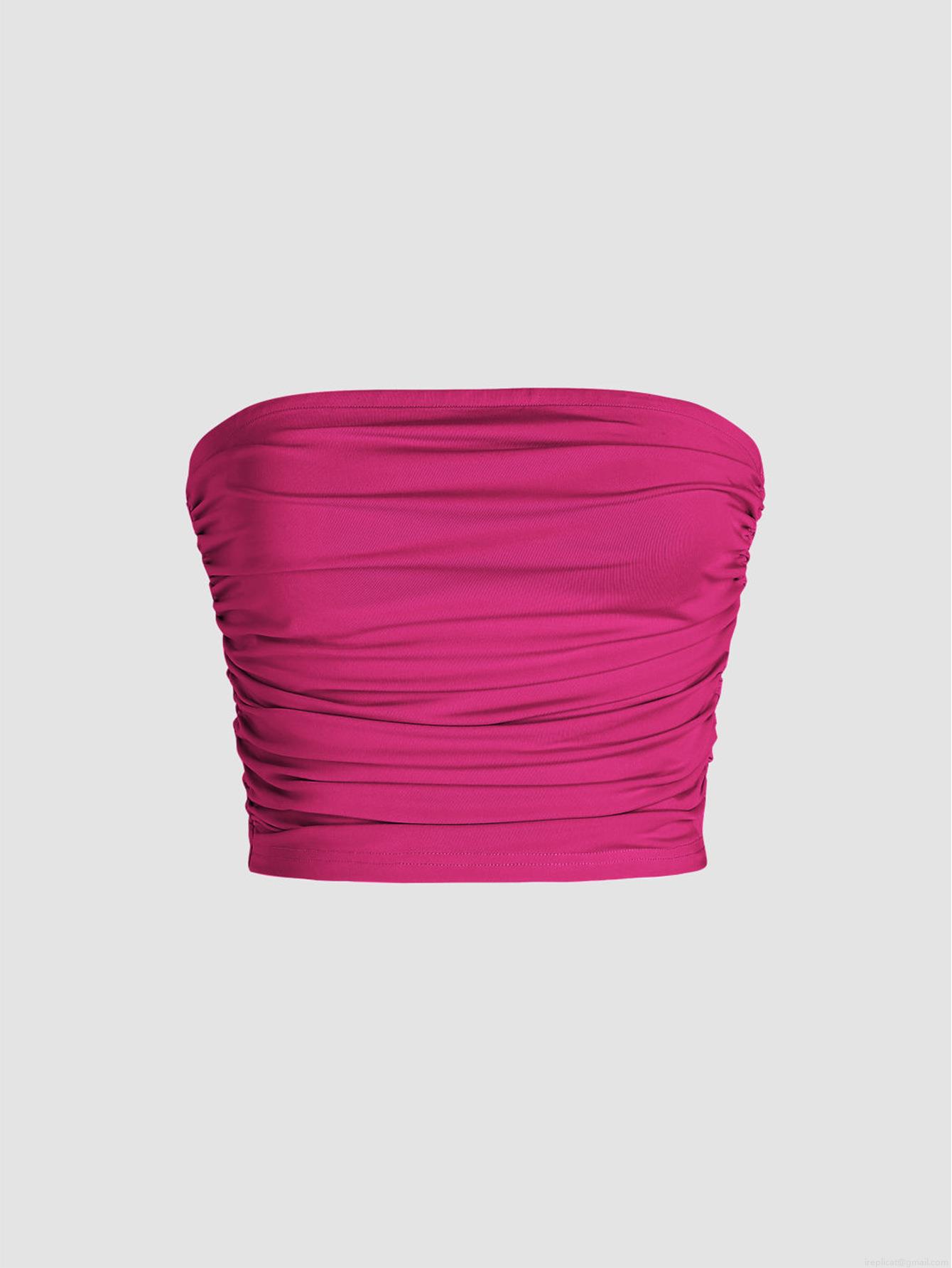 Women Sexy Ruched Tube Top Polyester Spandex Slim Fit Strapless Pleated Crop Top For Summer Party Clubwear Spicy Girl Style