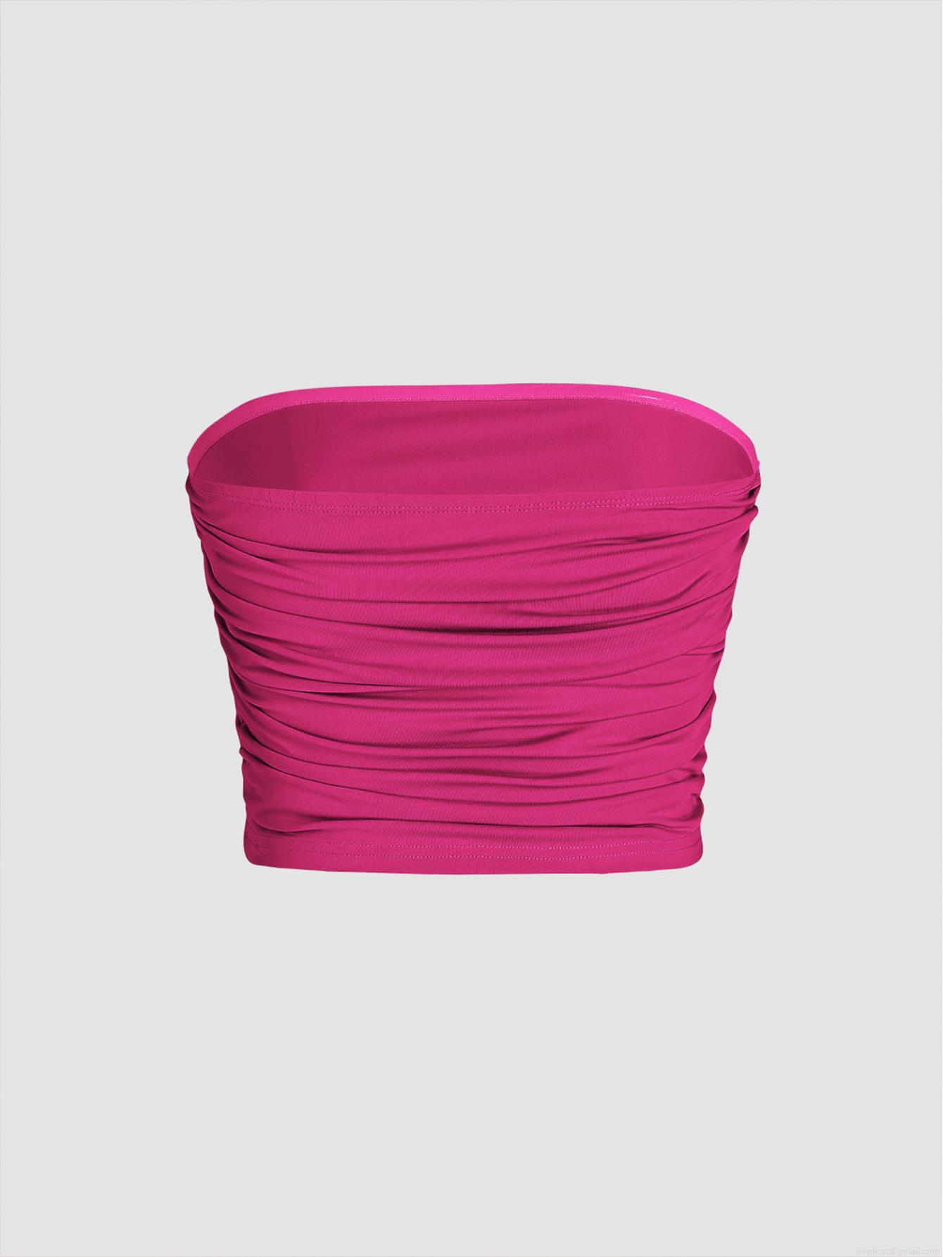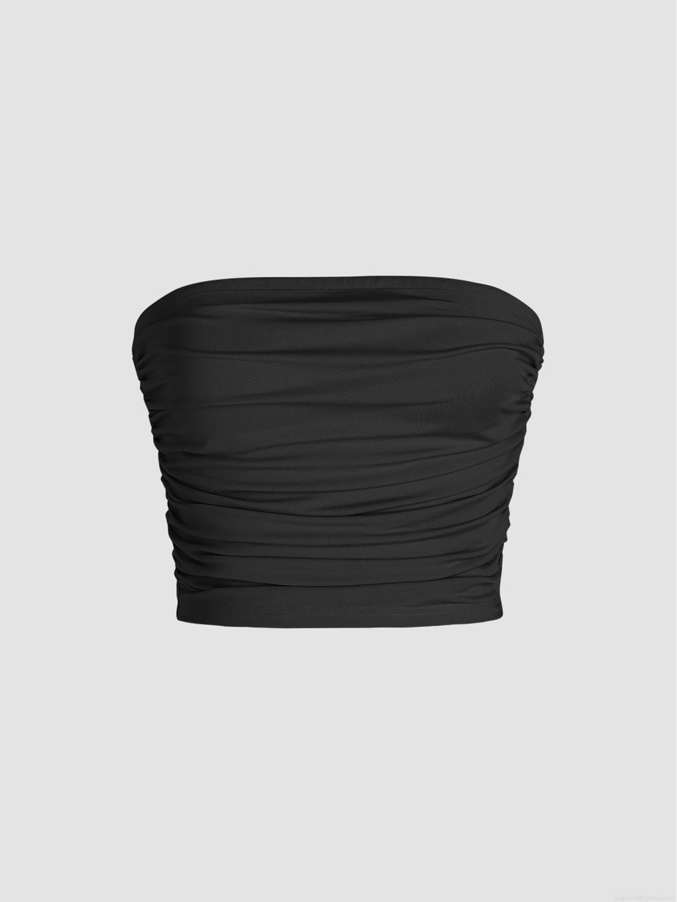 • Women Sexy Ruched Tube Top Polyester Spandex Slim Fit Strapless Pleated Crop Top For Summer Party Clubwear Spicy Girl Style