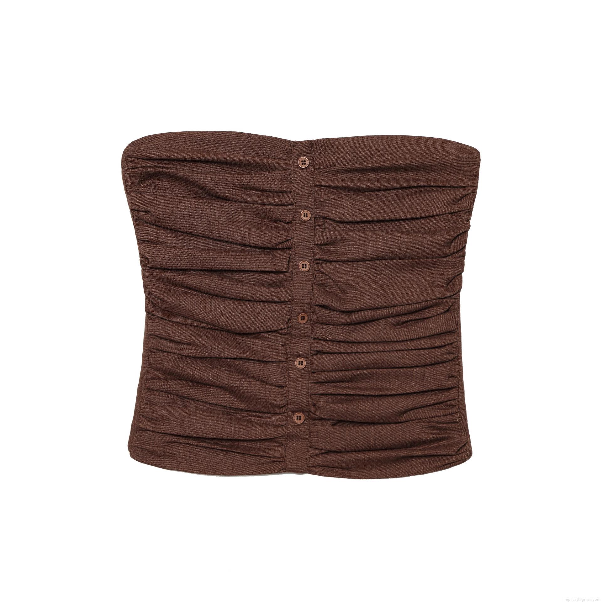 • Women Sexy Ruched Tube Top Strapless Polyester Linen Blend Corset Top With Front Buttons Solid Color Slim Fit Chic Crop Top For Party Dating Daily Summer