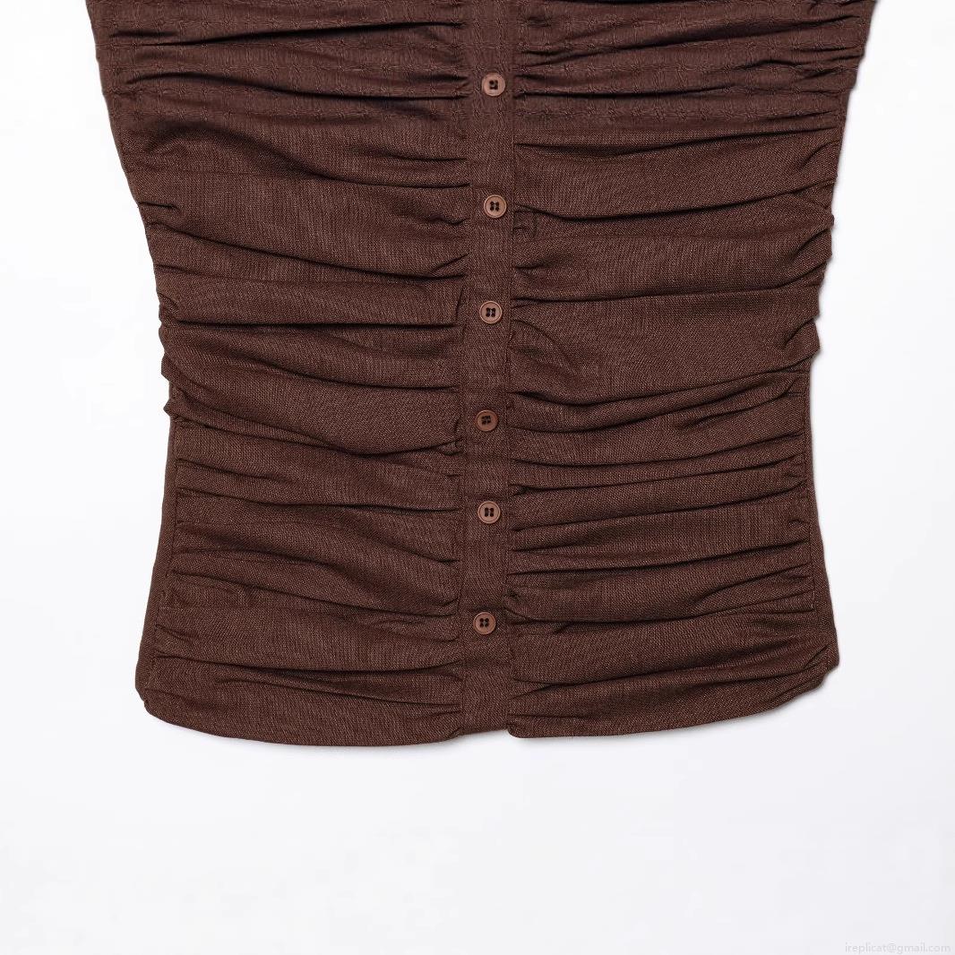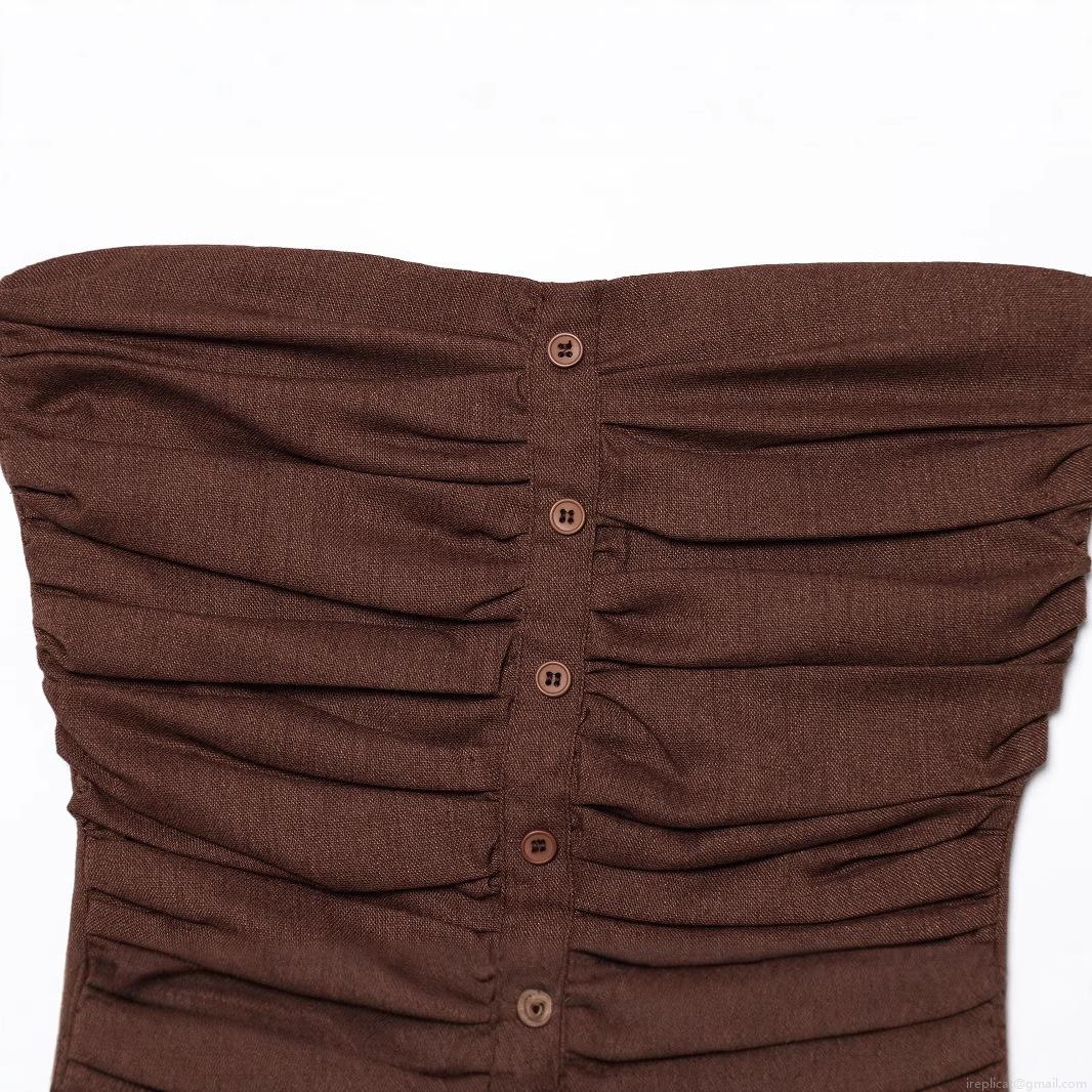 Solid Color, Pleats, Gathering, Button Decoration, Strapless Design