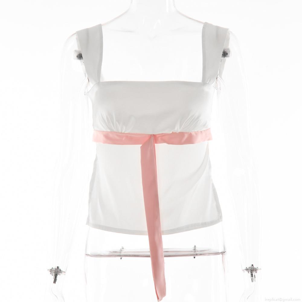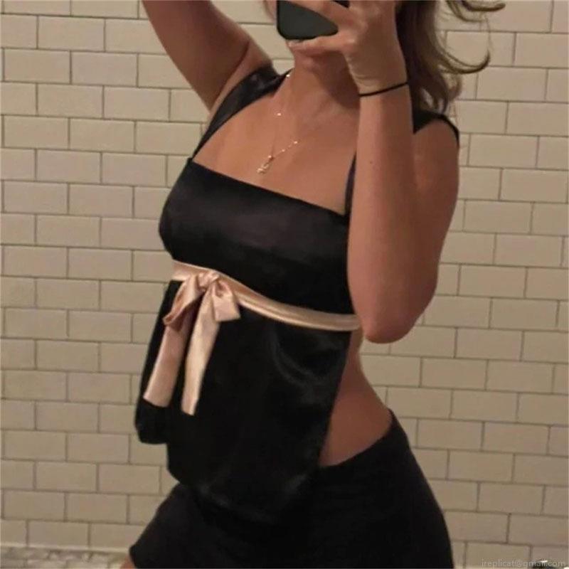 • Women Sexy Satin Cami Top Backless Bow Tie Contrast Color Patchwork Sleeveless Crop Top For Party Date Summer Streetwear Clubwear
