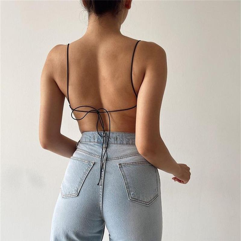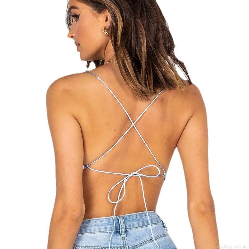• Women Sexy Satin Camisole Crop Top Crisscross Lace Up Backless Handkerchief Hem Spaghetti Strap V Neck Solid Color Streetwear Summer Clubwear Party Tank Top