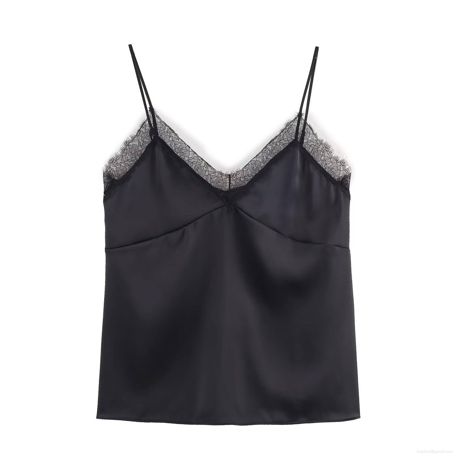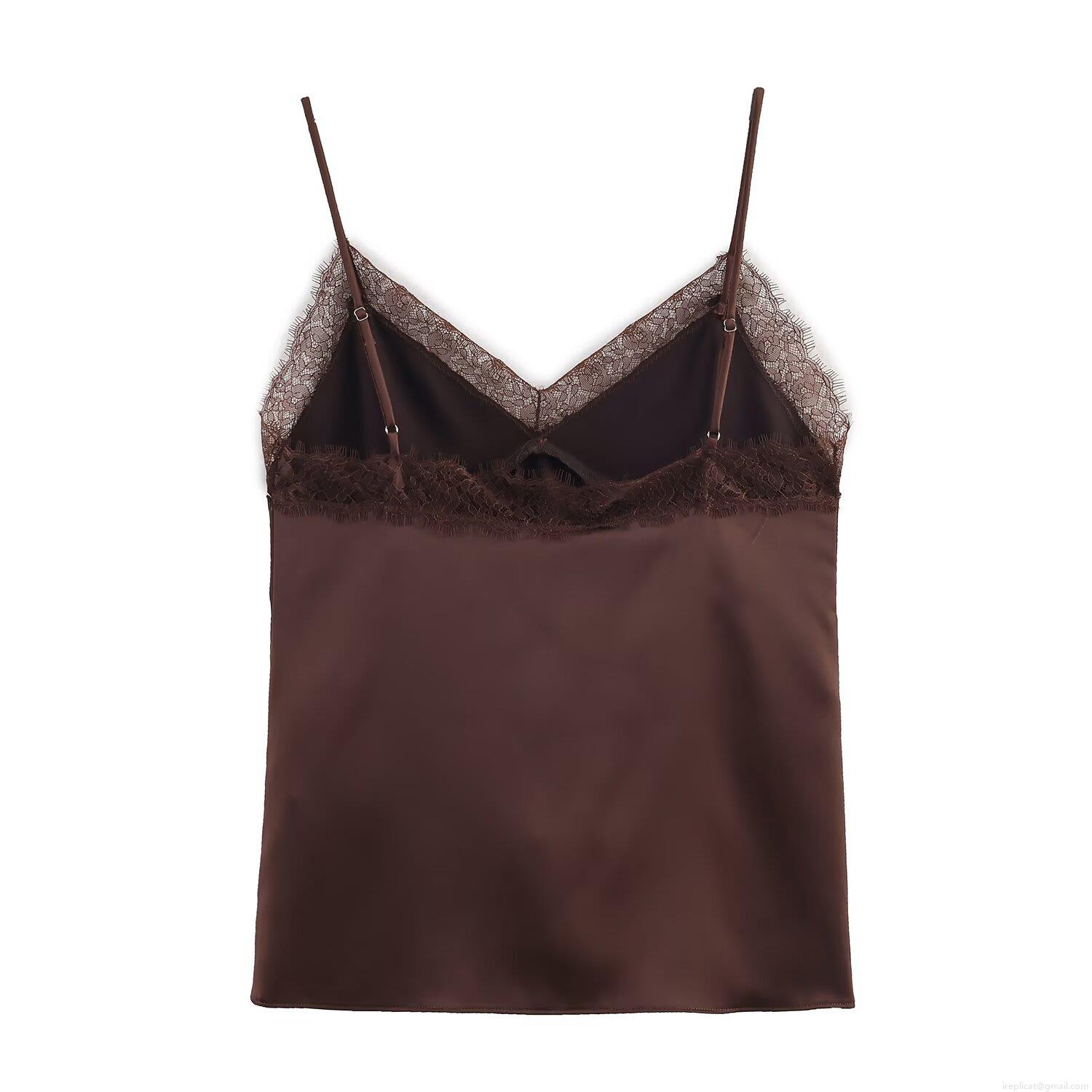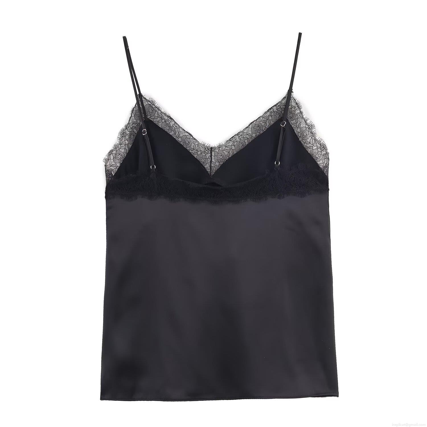 • Women Sexy Satin Lace Camisole V Neck Adjustable Spaghetti Strap Sleeveless Tank Top Solid Color Slim Fit Shirt For Club Party Dating Streetwear