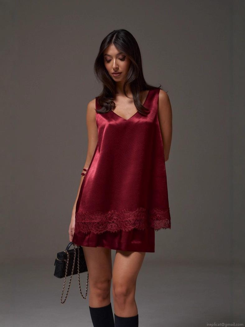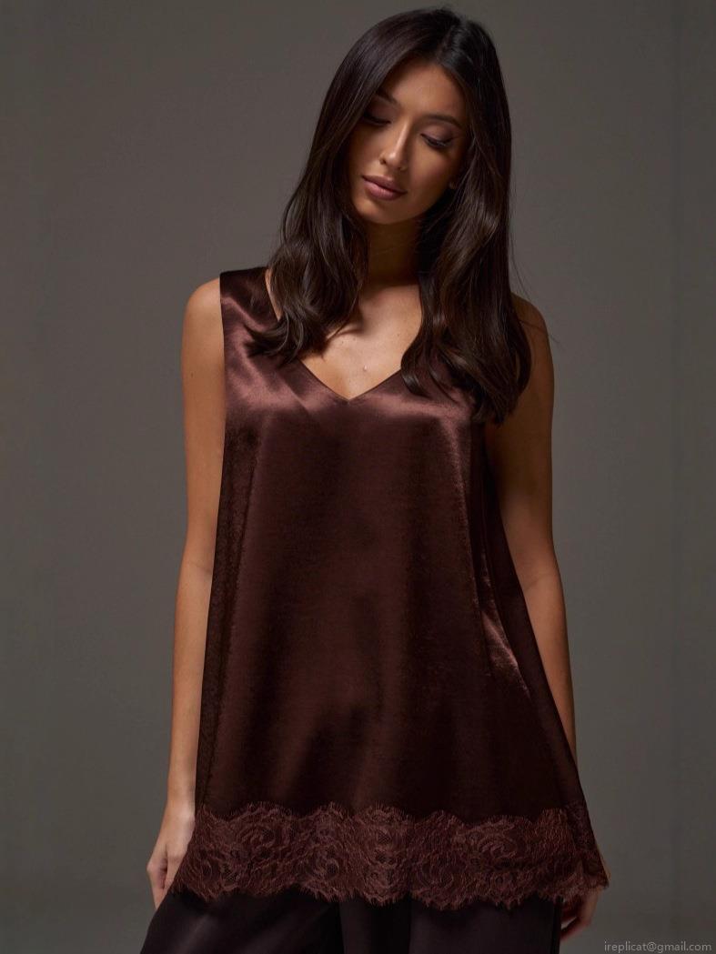 • Women Sexy Satin Lace Patchwork Tank Top V-Neck Sleeveless Loose Mid-Length Polyester Silk-Like Camisole Summer Streetwear Spicy Girl Casual Top