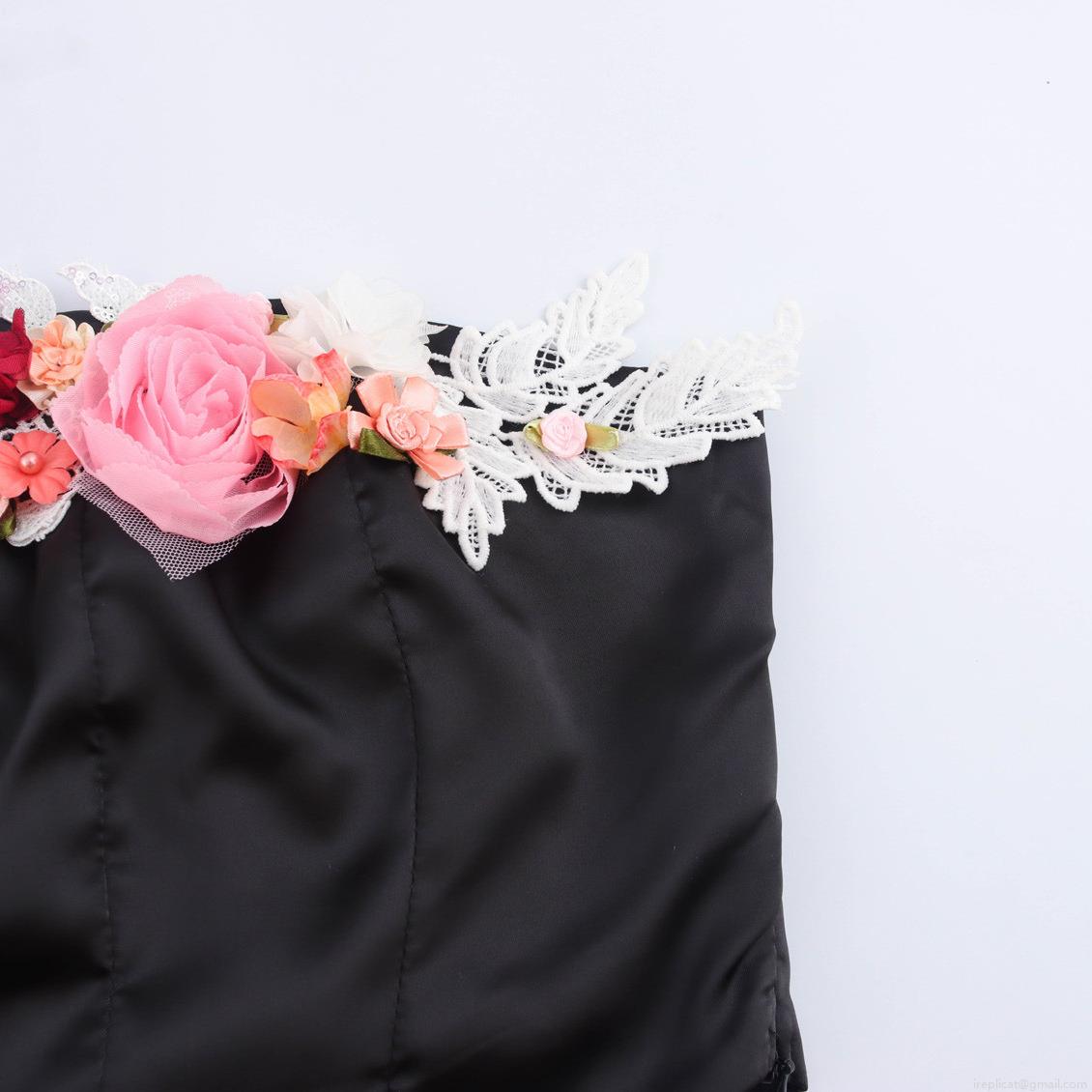 • Women Sexy Strapless Satin Tube Top With 3D Floral Lace Decoration Corset Style Bodycon Crop Top For Party Clubwear Spice Girl Apparel