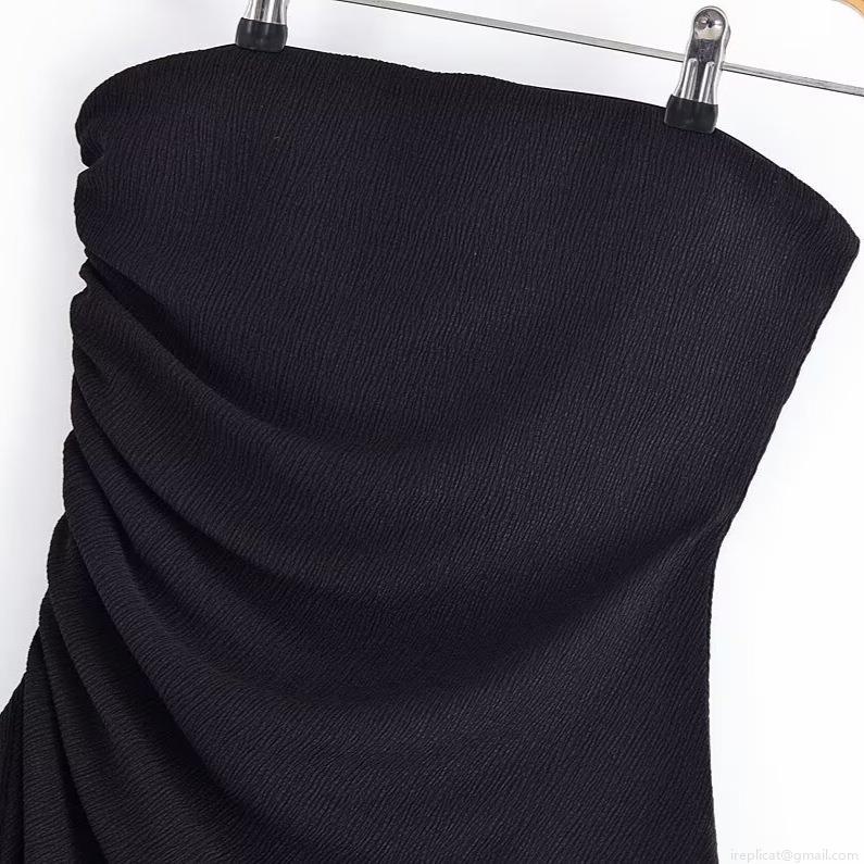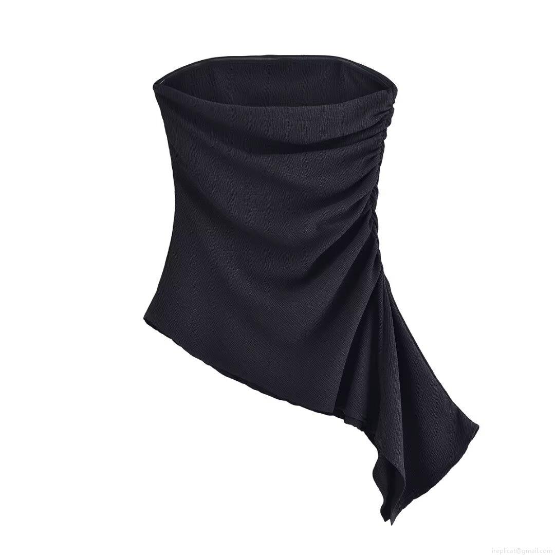 • Women Sexy Strapless Tube Top Asymmetric Pleated Drape Slim Fit Polyester Spandex Crinkled Texture Top For Party Summer Night Out
