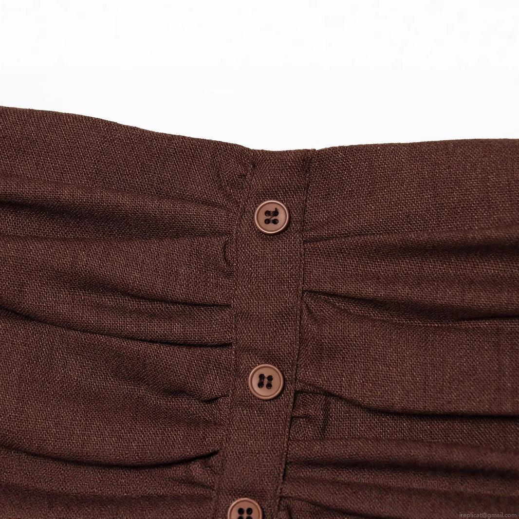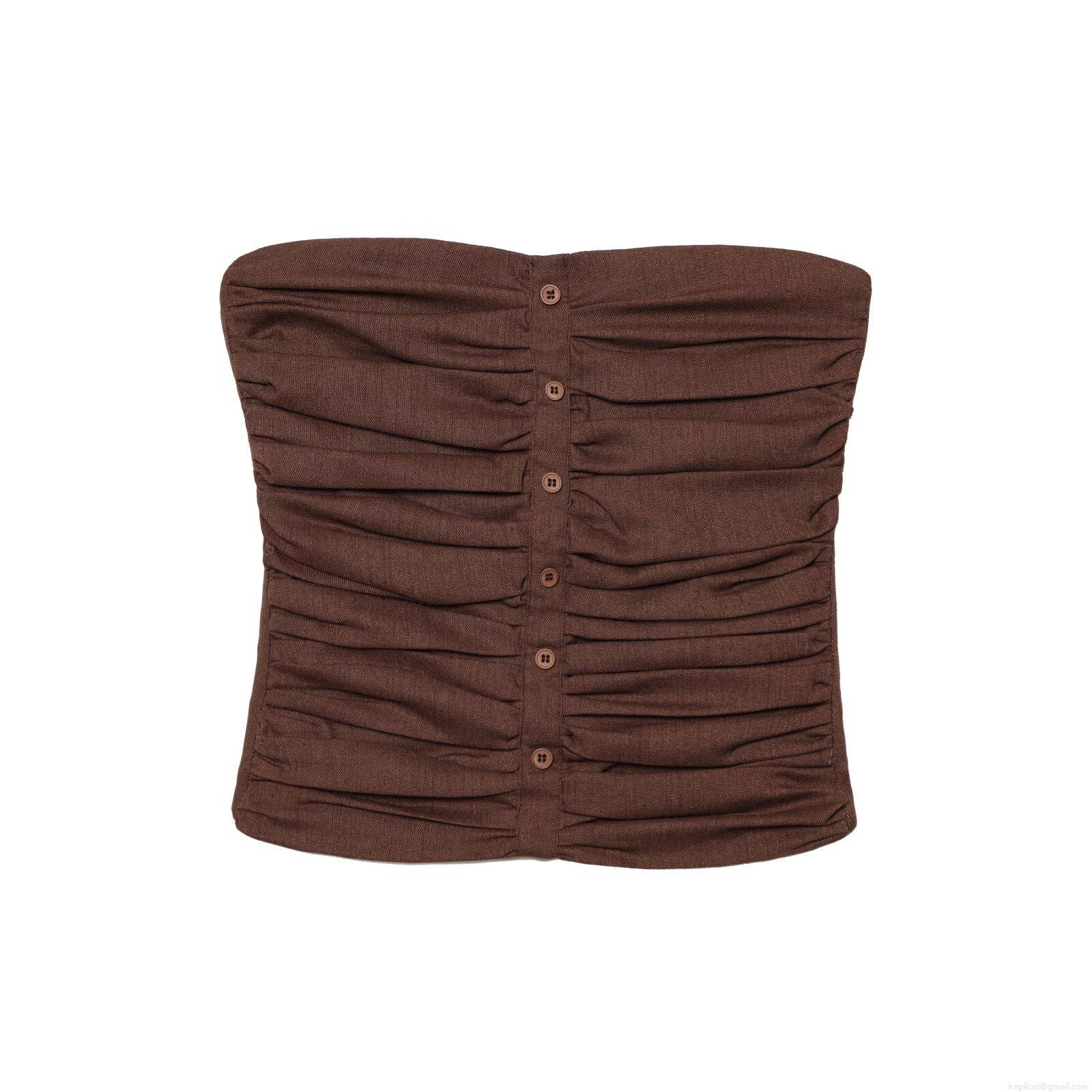 • Women Sexy Strapless Tube Top Polyester Linen Blend Ruched Single Breasted Button Up Slim Fit Crop Top For Summer Daily Vacation Streetwear