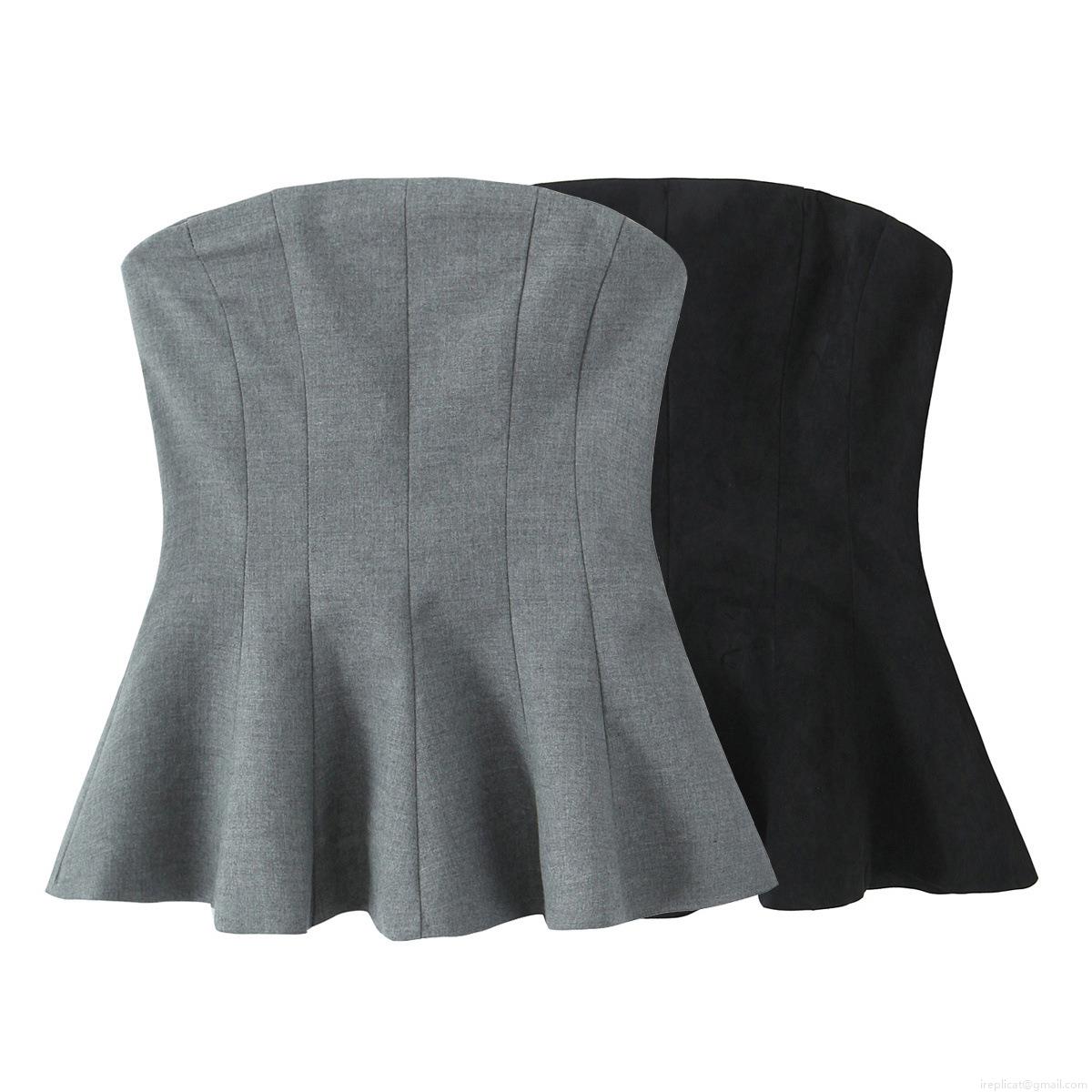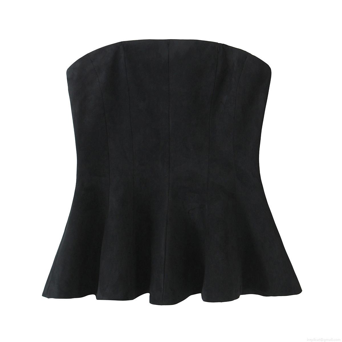 • Women Sexy Strapless Tube Top Polyester Suede Fabric Peplum Hem Side Zipper Slim Fit Fishbone Design For Party Street Club European Fashion