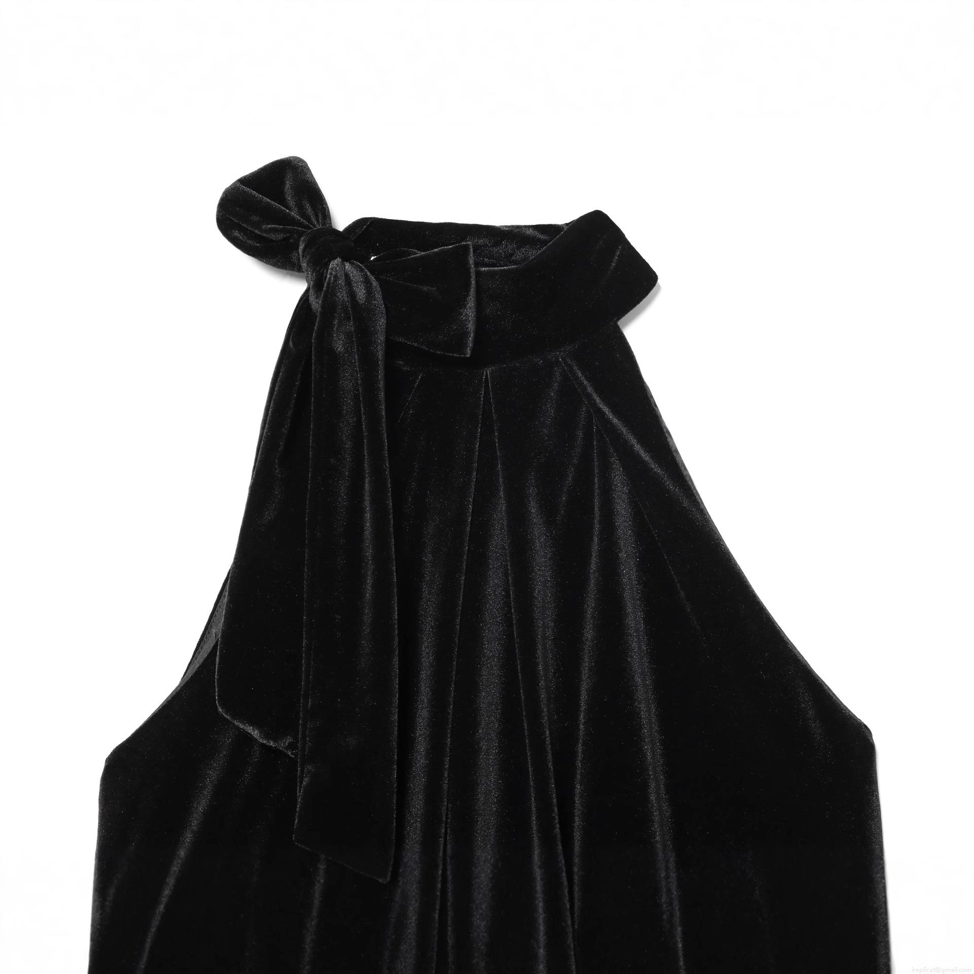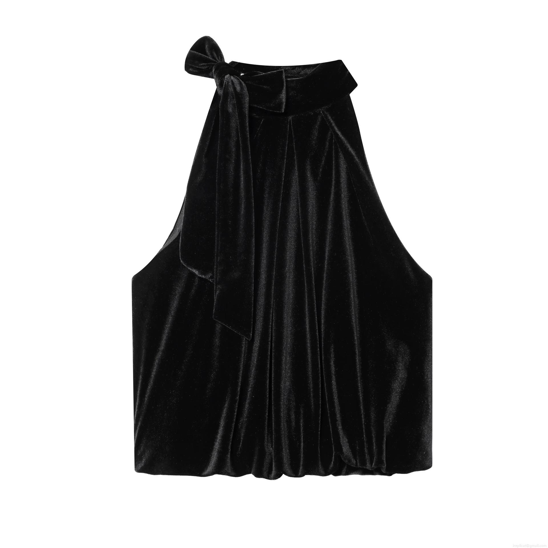 • Women Sexy Velvet Halter Top Bow Backless Sleeveless Tank Top Elegant Party Clubwear Black Slim Fit Evening Blouse