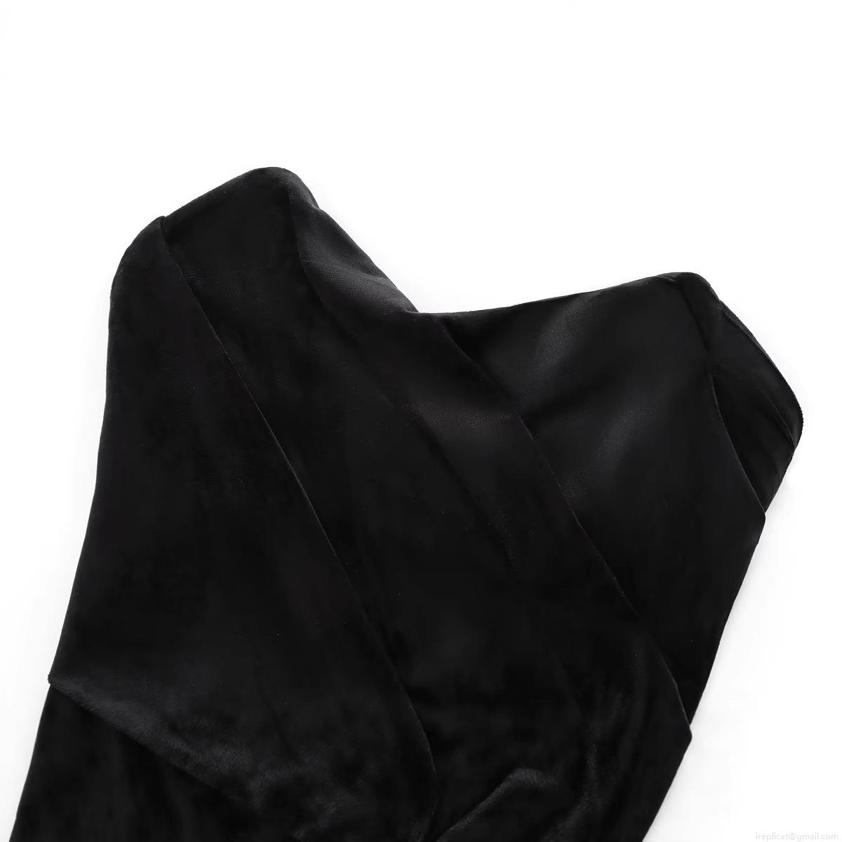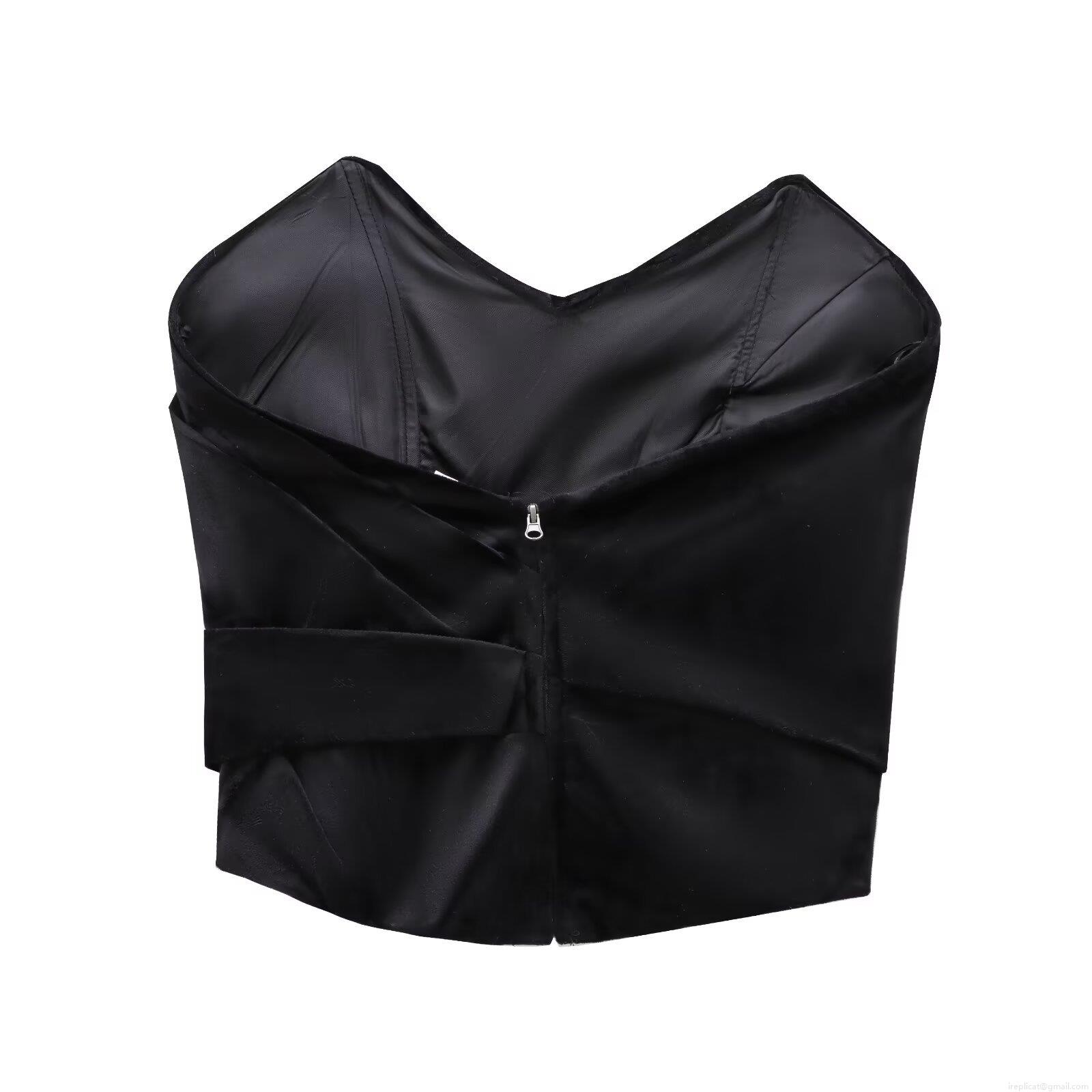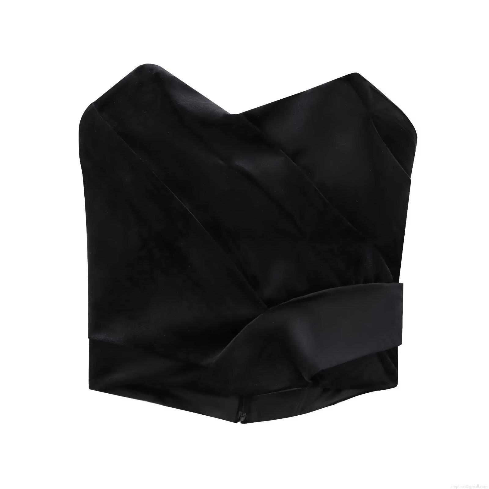 • Women Sexy Velvet Tube Top Strapless Criss Cross Ruched Bandeau With Back Zipper Elegant Satin Crop Top For Party Night Club Black Slim Fit Tank Top