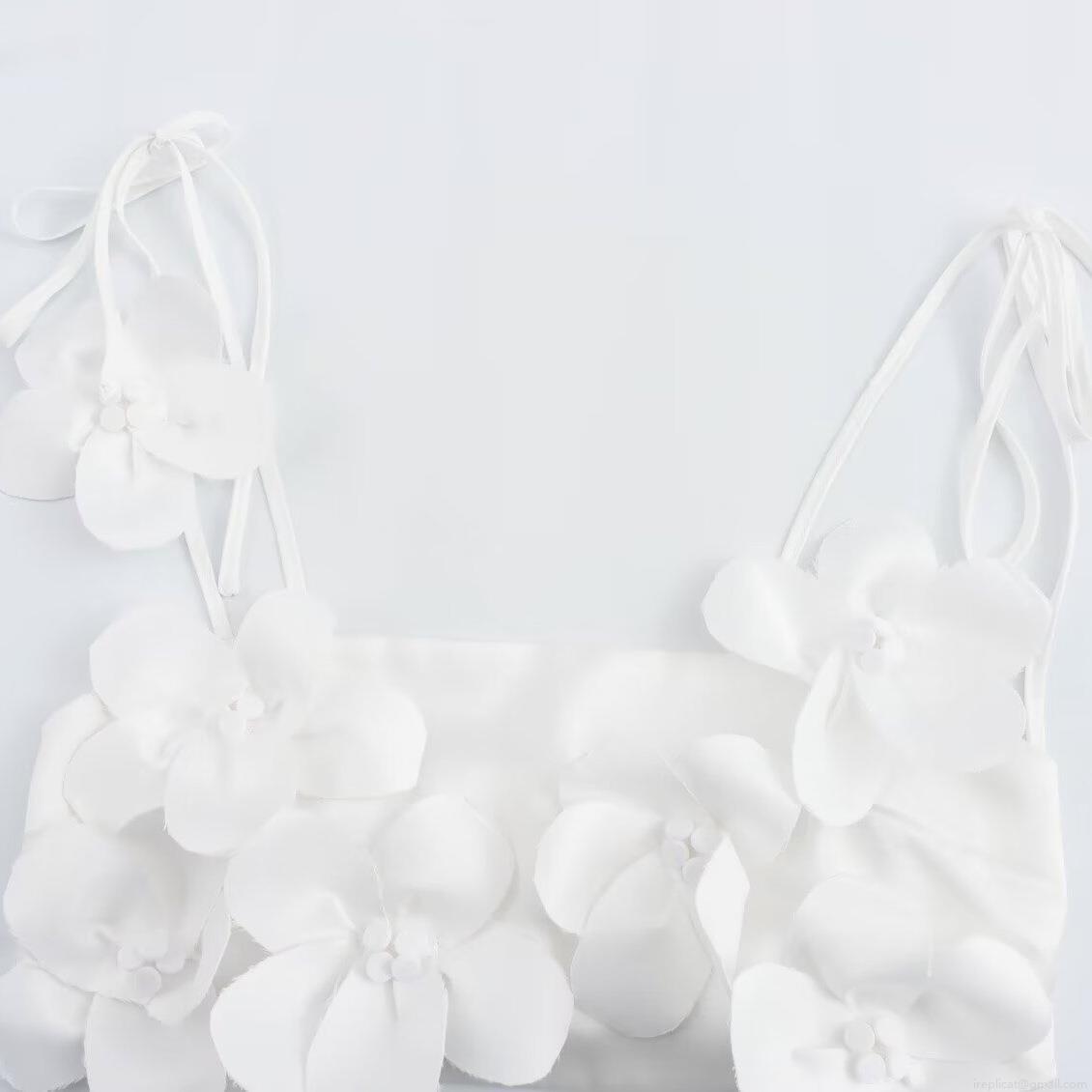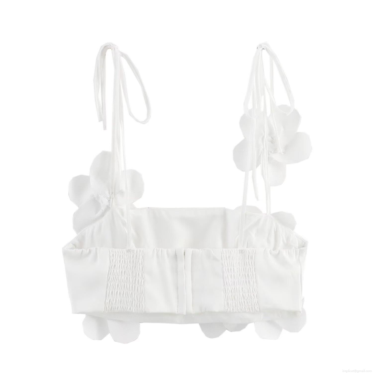 • Women Sexy White 3D Flower Camisole Top Spaghetti Strap Backless Tie-Up Crop Top For Summer Party Clubwear Night Out